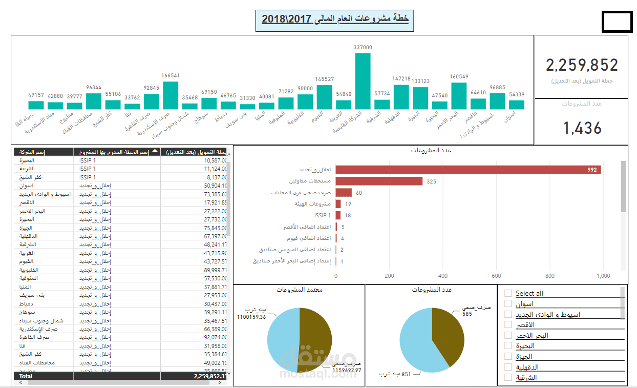 تم ربط جداول Ms Excel للخطة السنوية، و تحليل و عرض النتائج واللرسومات البيانية من خلال Dashboard على برنامجPower BI