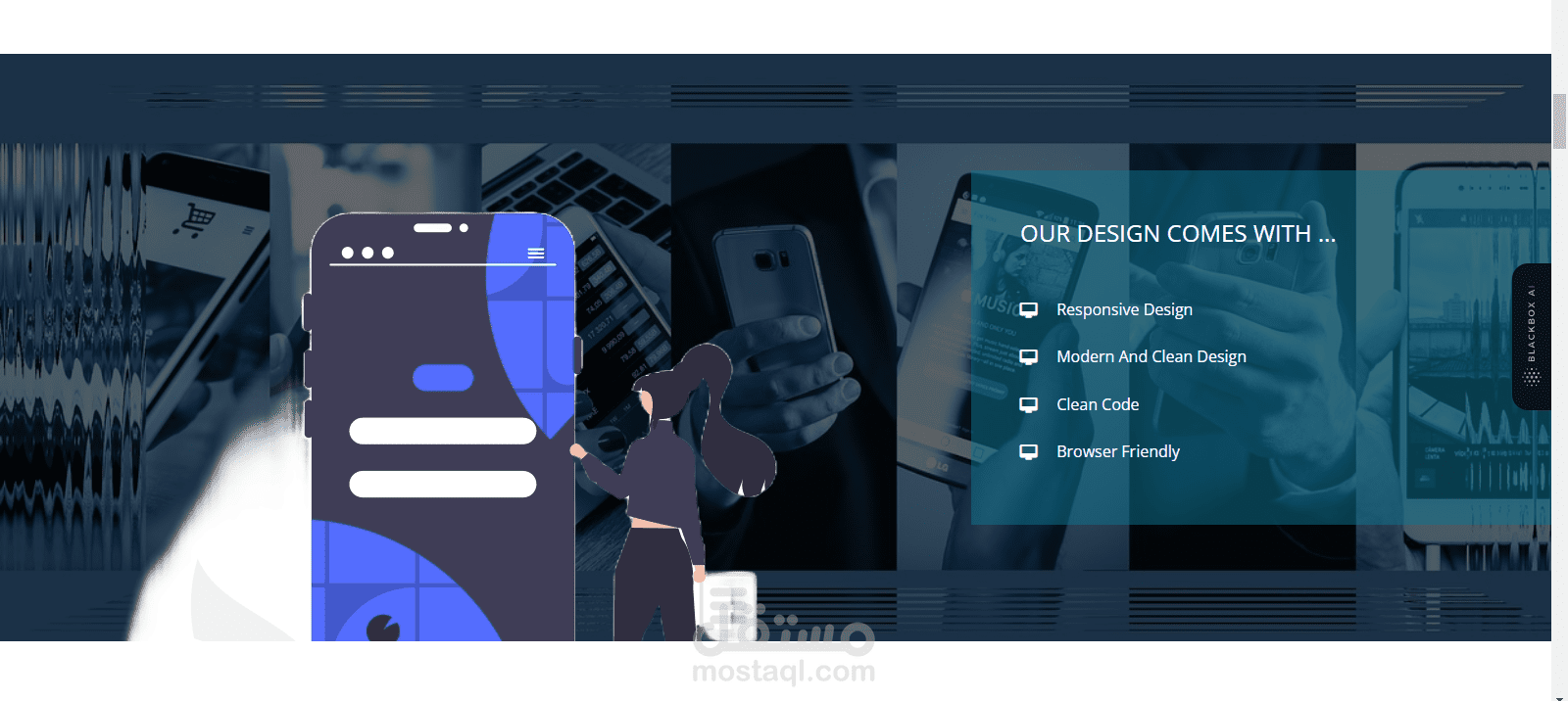 يتكون الموقع من صفحه واحده لاكنها تحتوي على اكثر من قسم ومتجاوبه تماما مع جميع احجام الشاشات