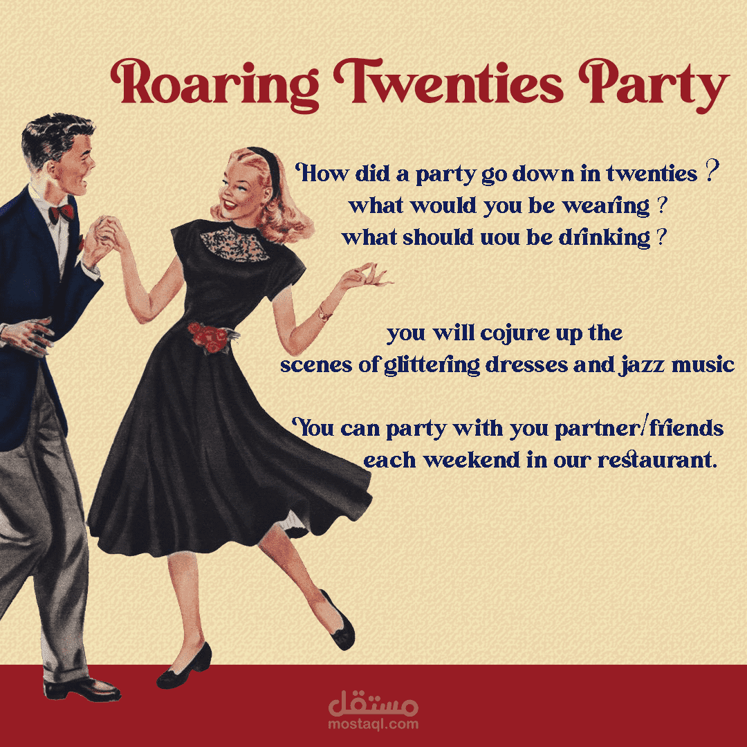 The Roaring Twenties Restaurant is the first Jazz restaurant/club in Alexandria, It's designed on the twenties style, jazz bands will perform every weekend for our customers and most importantly food is prepared as your in the middle of twenties.
