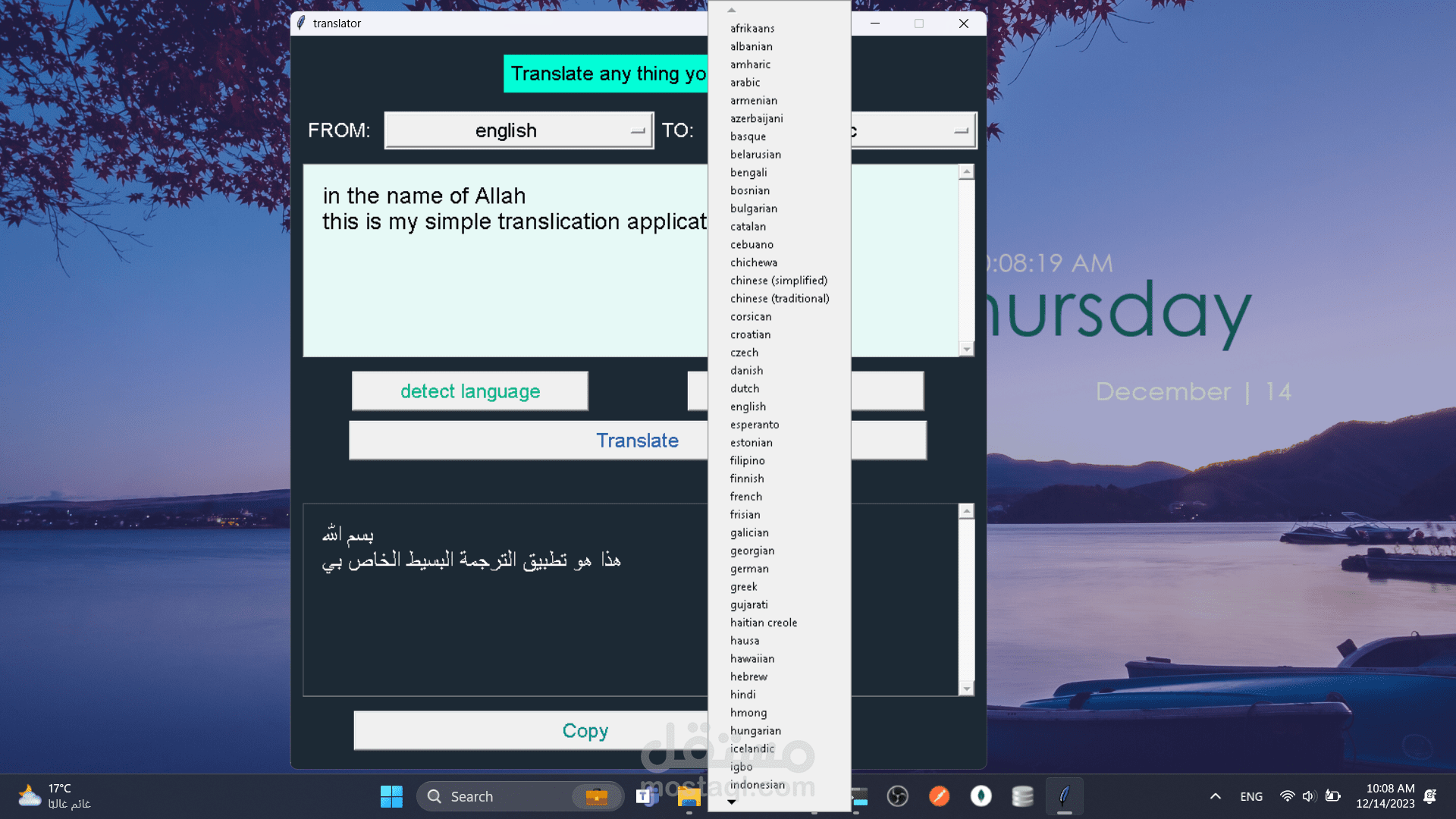 تطبيق سطح المكتب بواجهة رسومية يمكّنك من ترجمة النصوص من وإلى جميع اللغات باستخدام خدمة ترجمة Google.