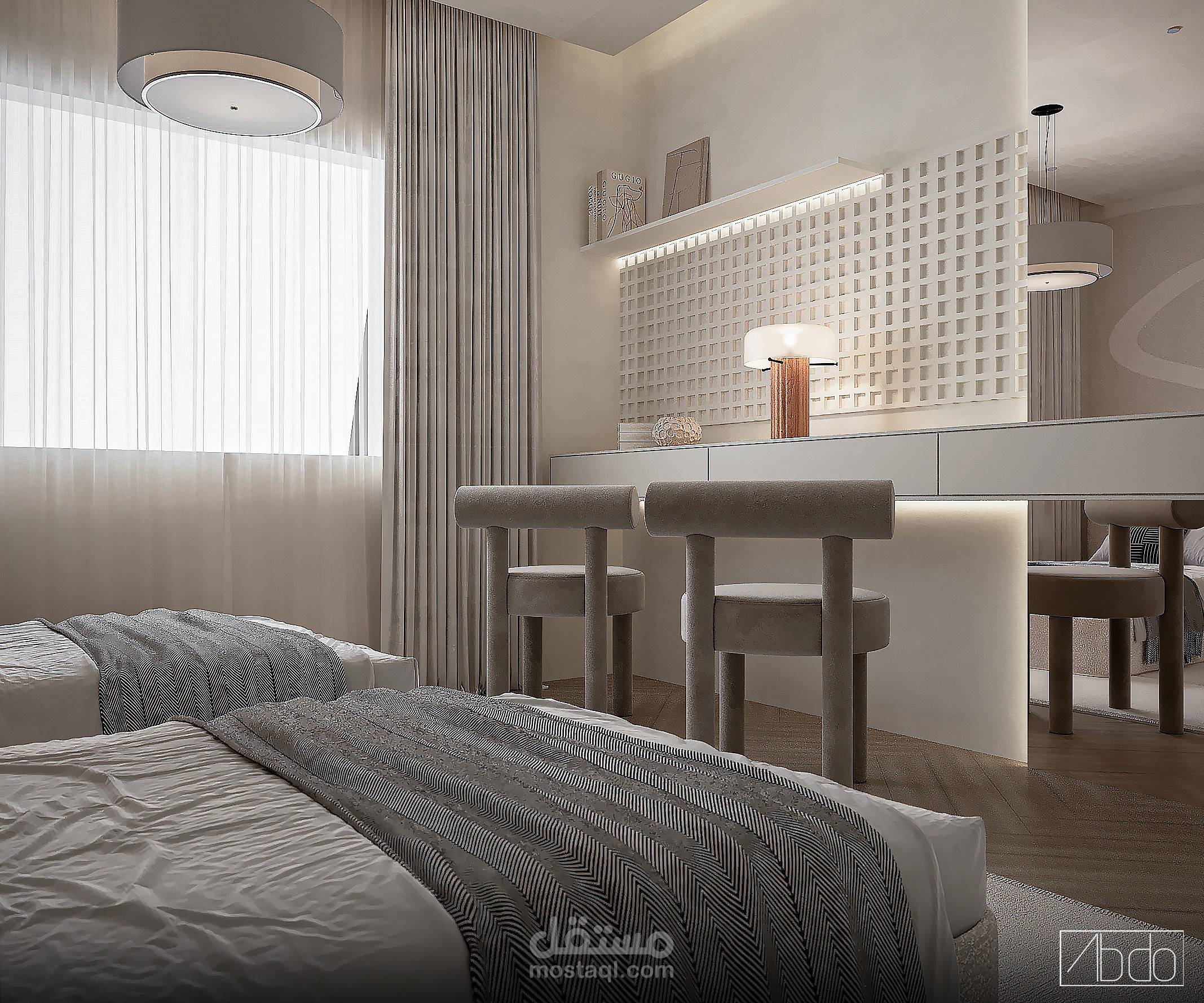 غرفه اطفال مزدوجه اعمارهم 12 و 10 عام بستايل مودرن وهادئ