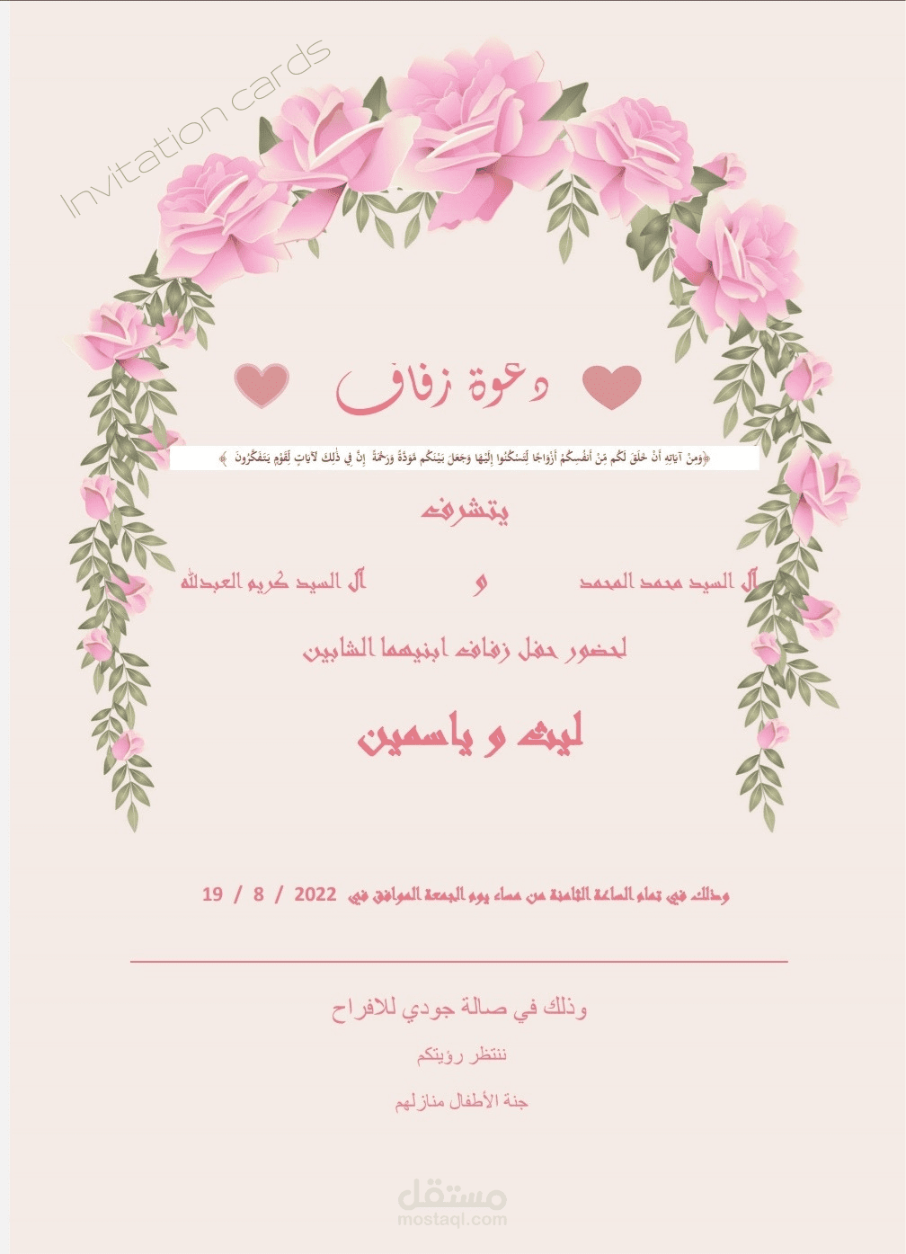 بطاقة دعوة زفاف إلكترونية تم تصميمها بواسطة برنامج كانفا