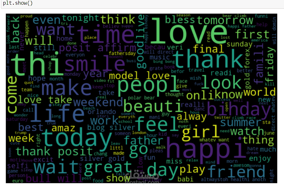 ثم تم تحويل التغريدات إلى مصفوفة من الميزات باستخدام تقنية Bag of Words (BoW) لتمثيل النصوص بشكل رقمي. بعد ذلك، تم تقسيم البيانات إلى مجموعة تدريب واختبار، وتم تدريب نموذج Logistic Regression على مجموعة التدريب. تم تقييم أداء النموذج باستخدام مقاييس مثل accuracy score حيث وصلت دقه الModel الي اكثر من 94%.
