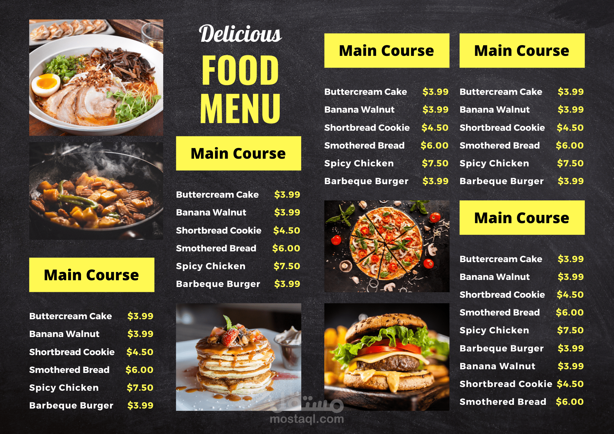 و أستخدمت صور خارجيه و صور مصوره من المطعم و كانت الدقه مهمه جدا حتي لا يحدث مشكله في الطباعه