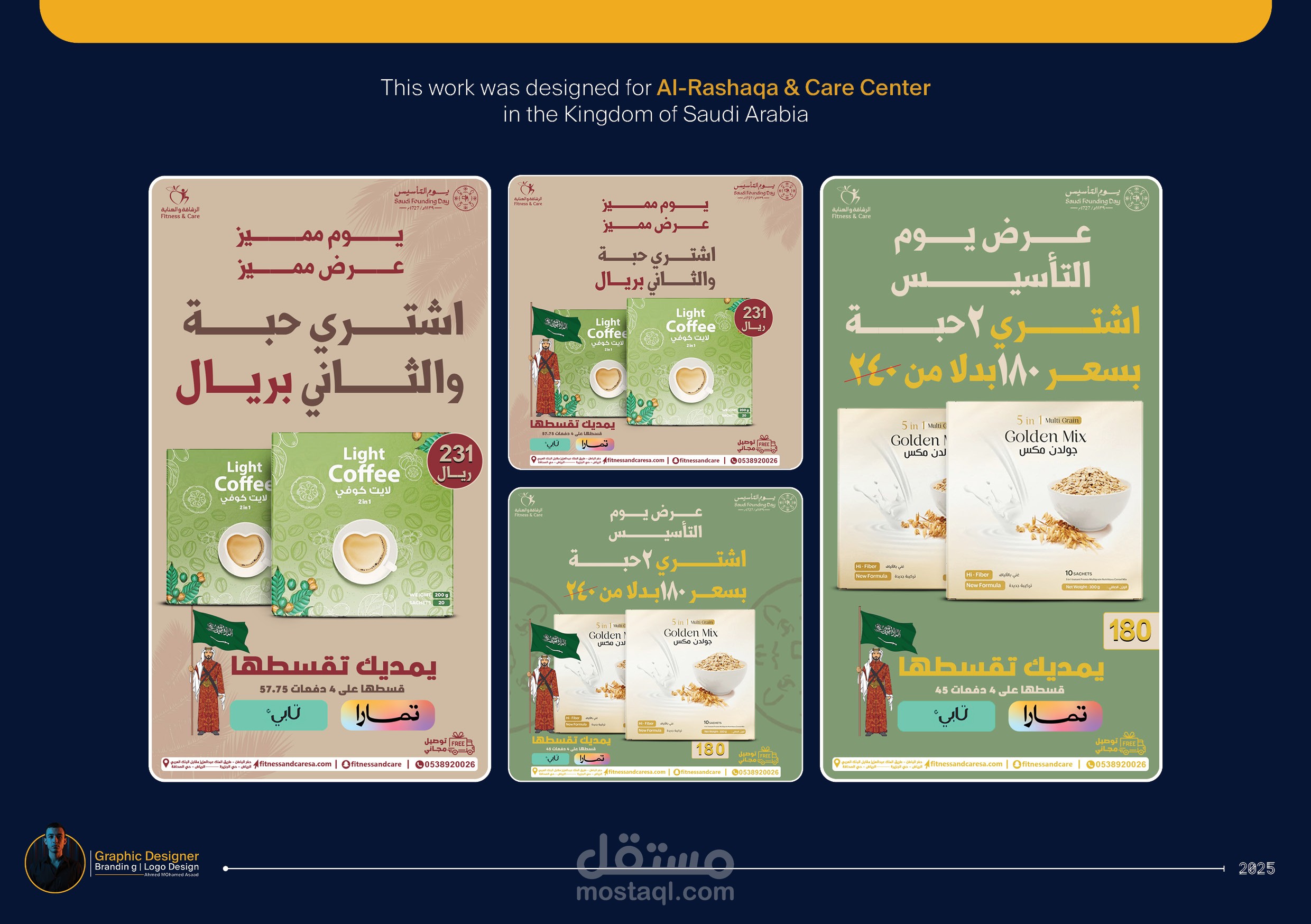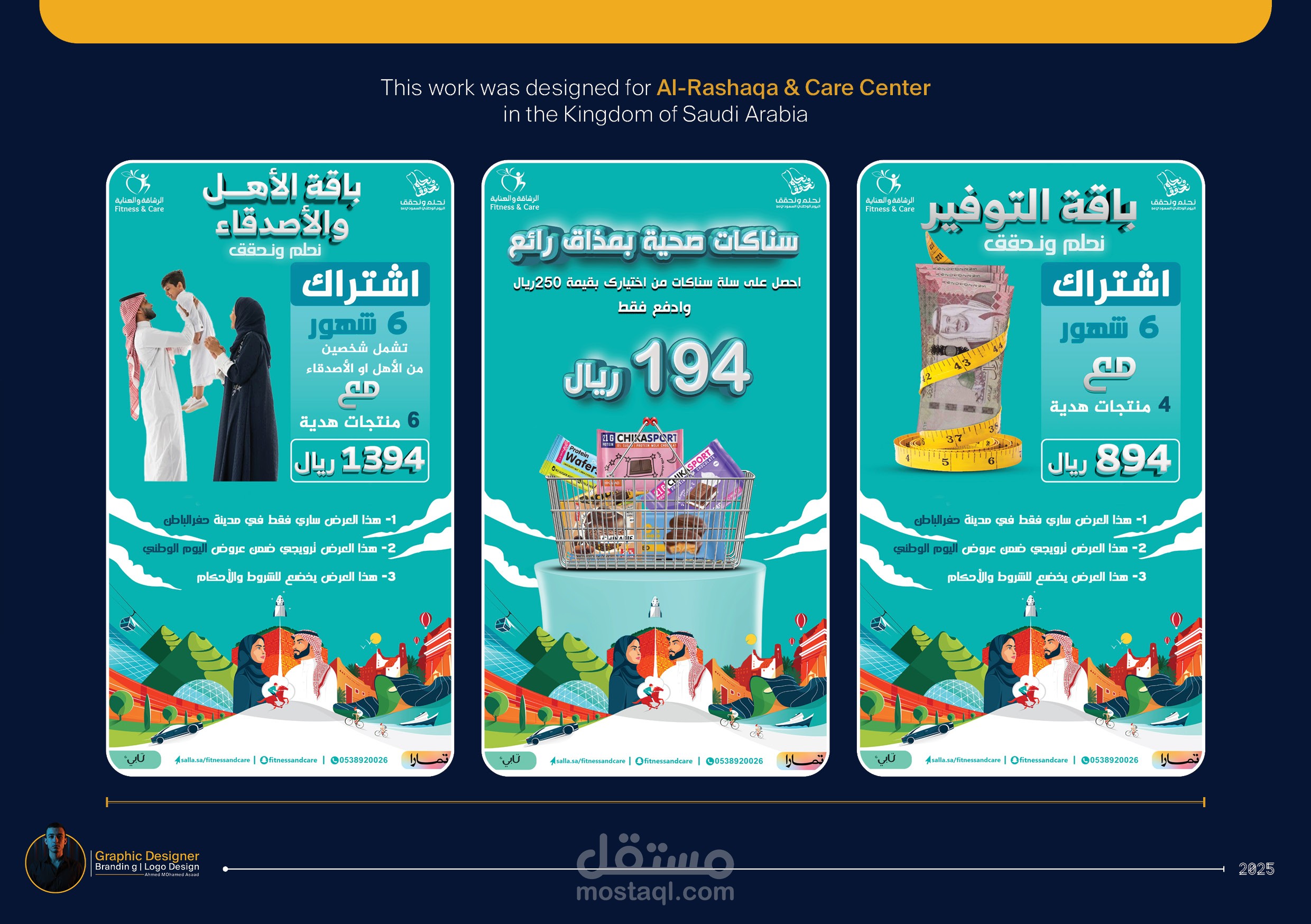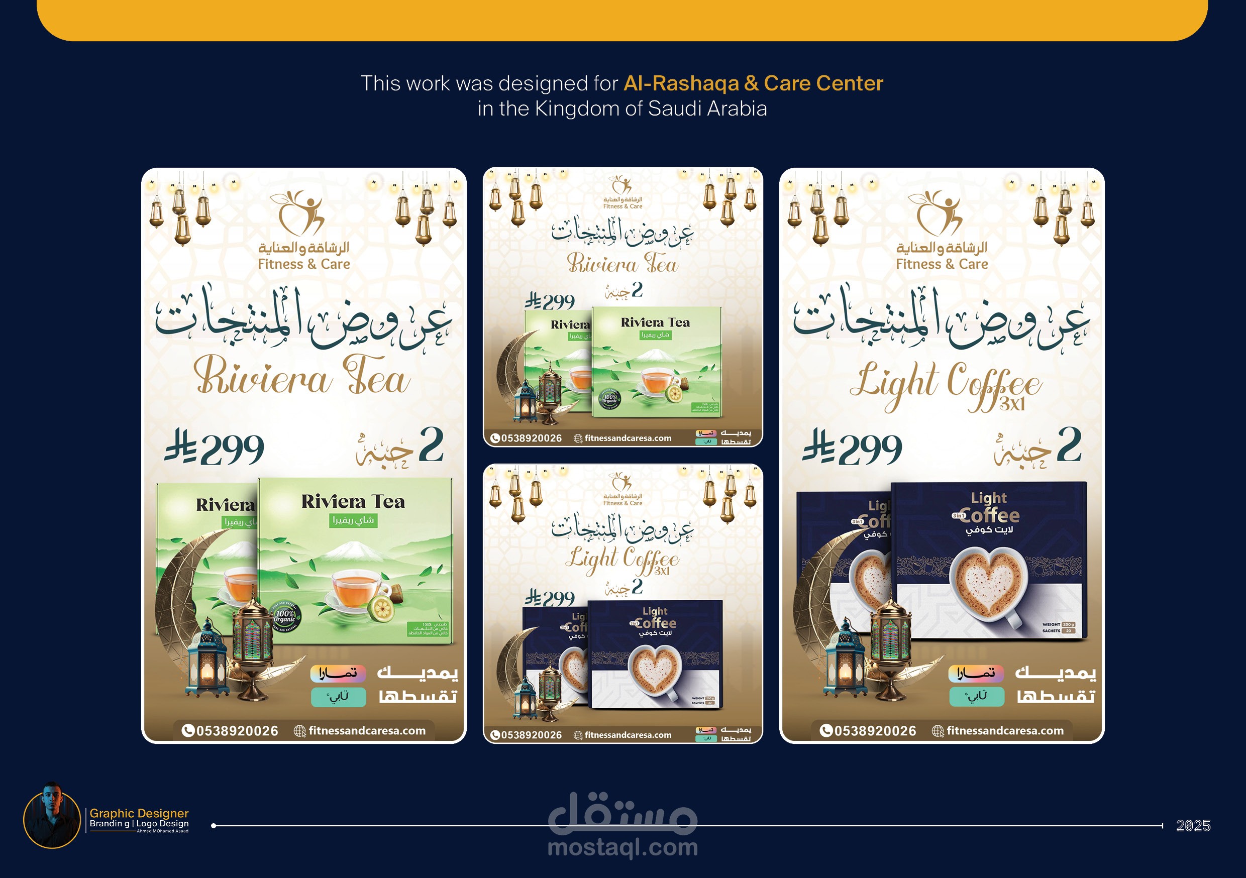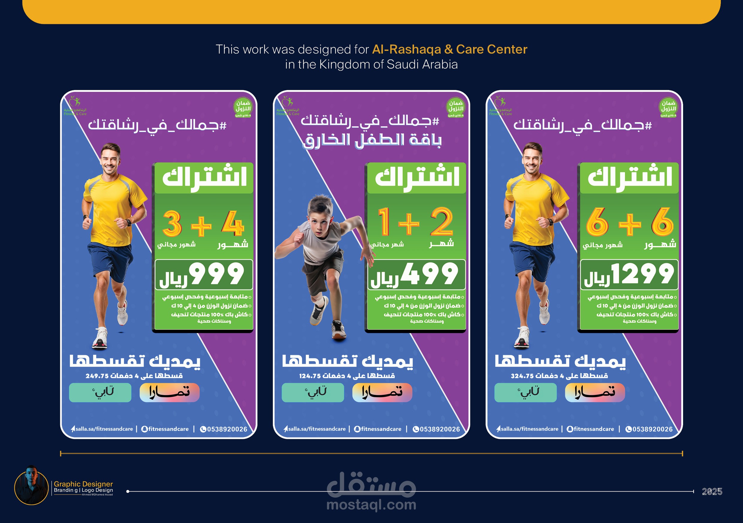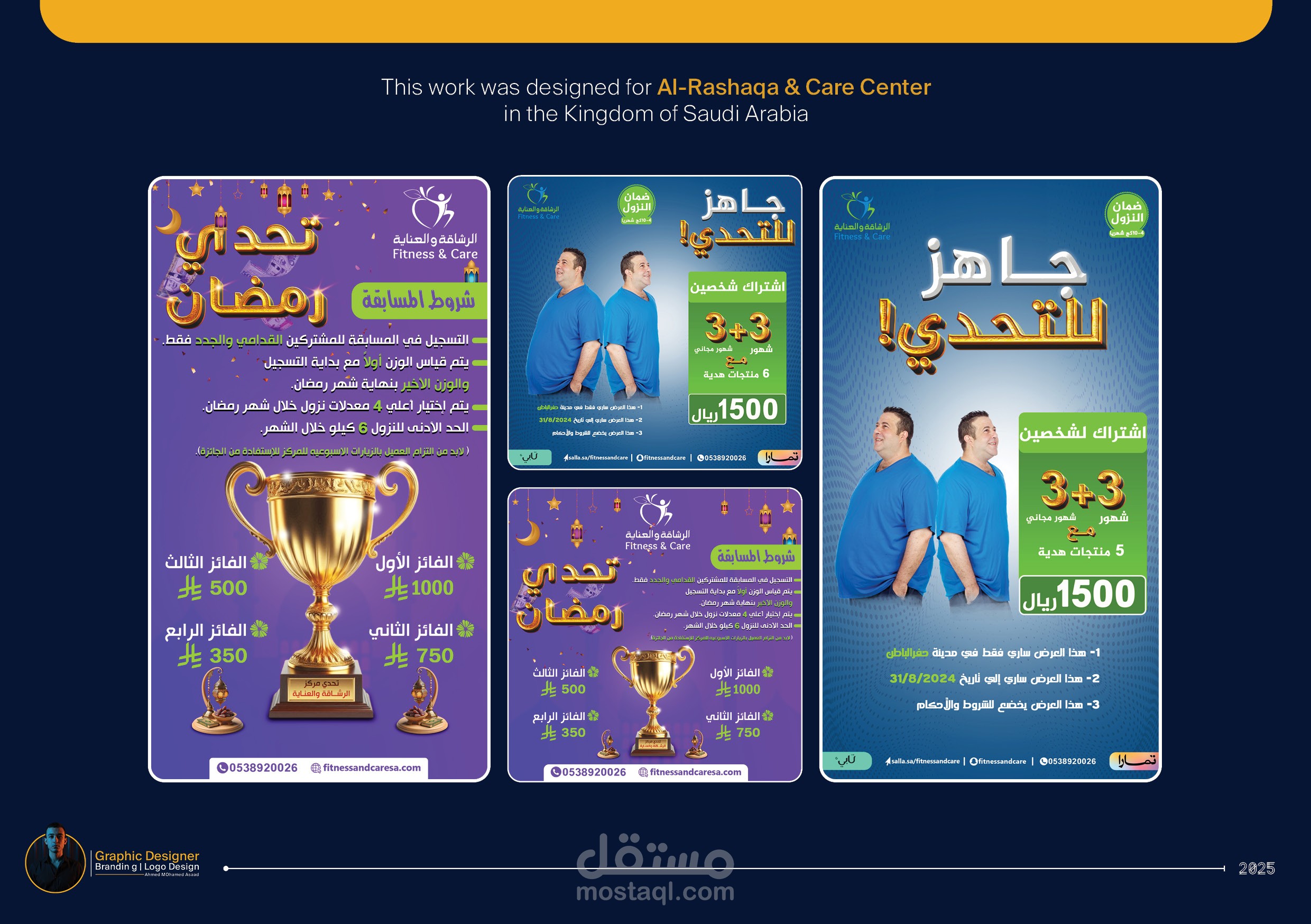 تصميمات سوشيال ميديا مميزة لمركز الرشاقة والعناية،