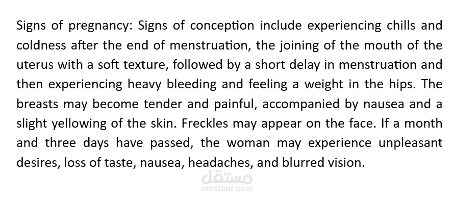 Here is a part of a gynecological paper demonstrating pregnancy, its signs and symptoms translated into English in an understandable clear way to the public as well as health care professionals