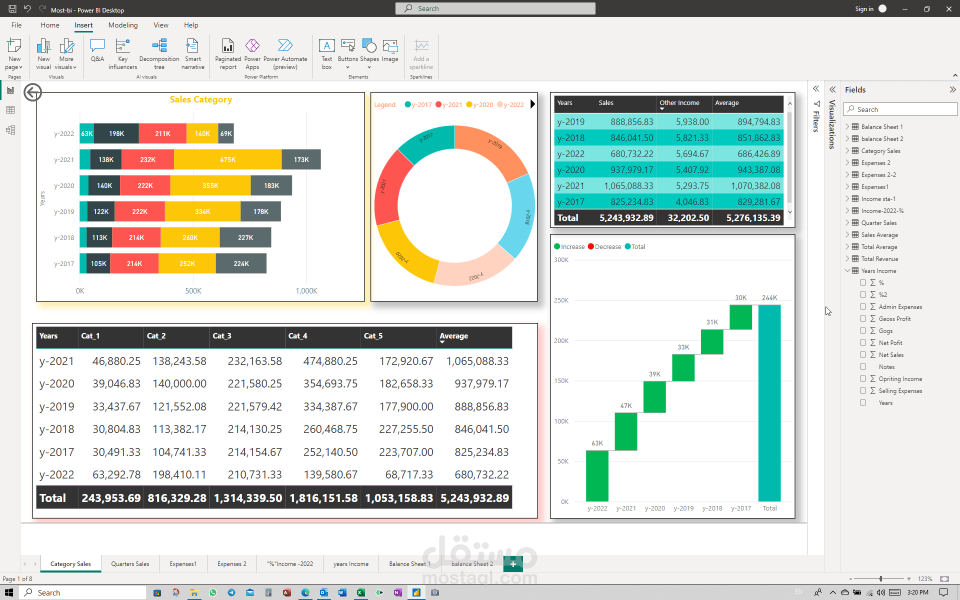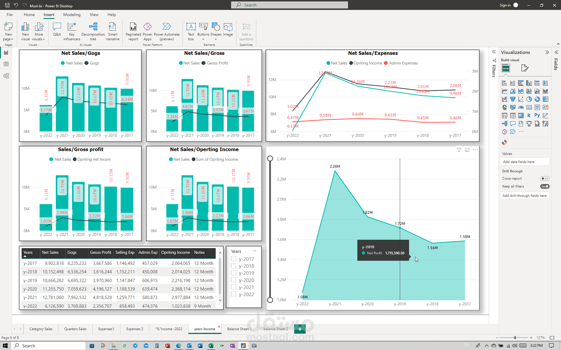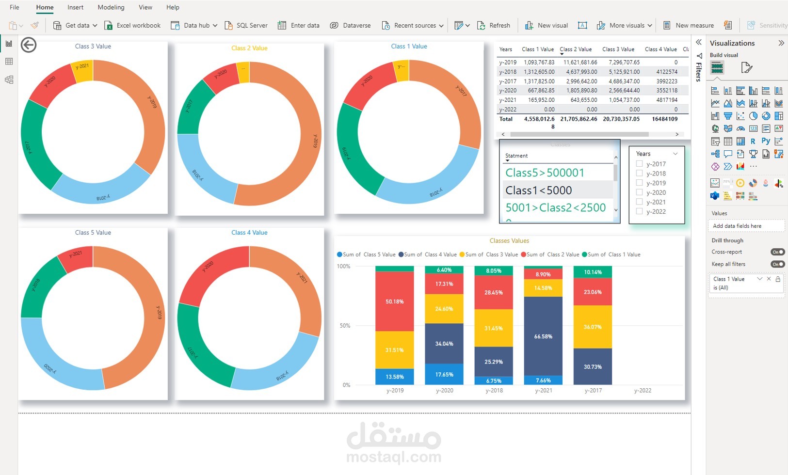 العمل عبارة عن عمل تحليلات مالية على برنامج power B1