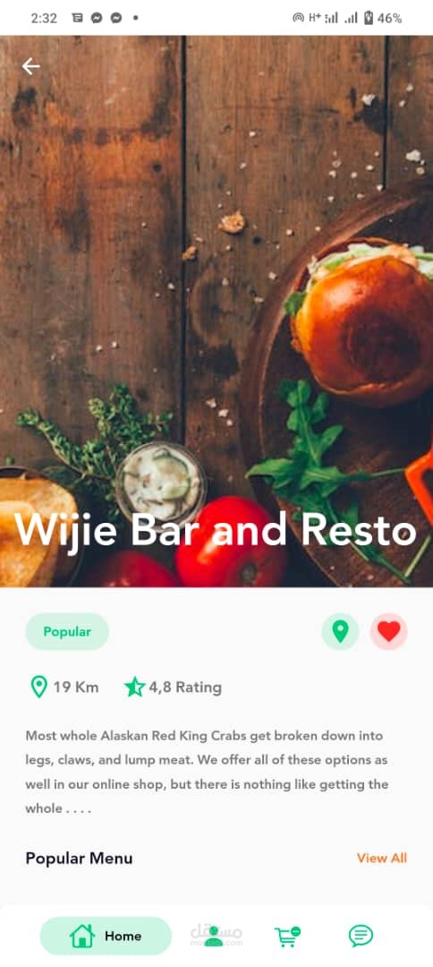 تطبيق لمطعم مختص في الوجبات السريعه ، تفاصيل اكثر في الصور