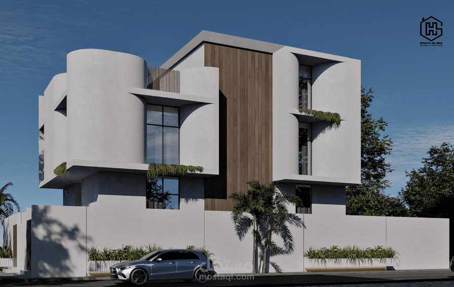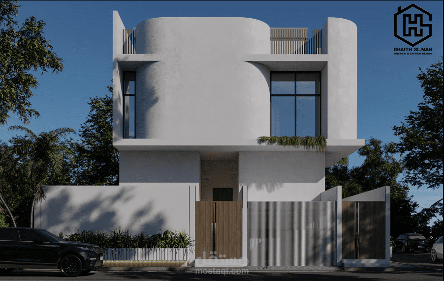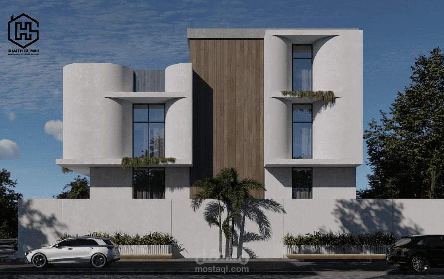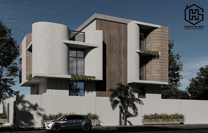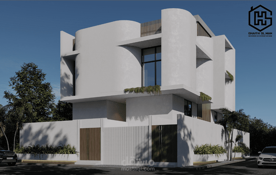 My design for the external facades of a villa in the United Arab Emirates. The design was according to the client’s request, with a simple design with a wrapped angle. The extension of the external facades is interrupted by horizontal elements to add a kind of luxury. Wood was added to the external facade with the addition of a type of resistant material. The design was simple and expressive.