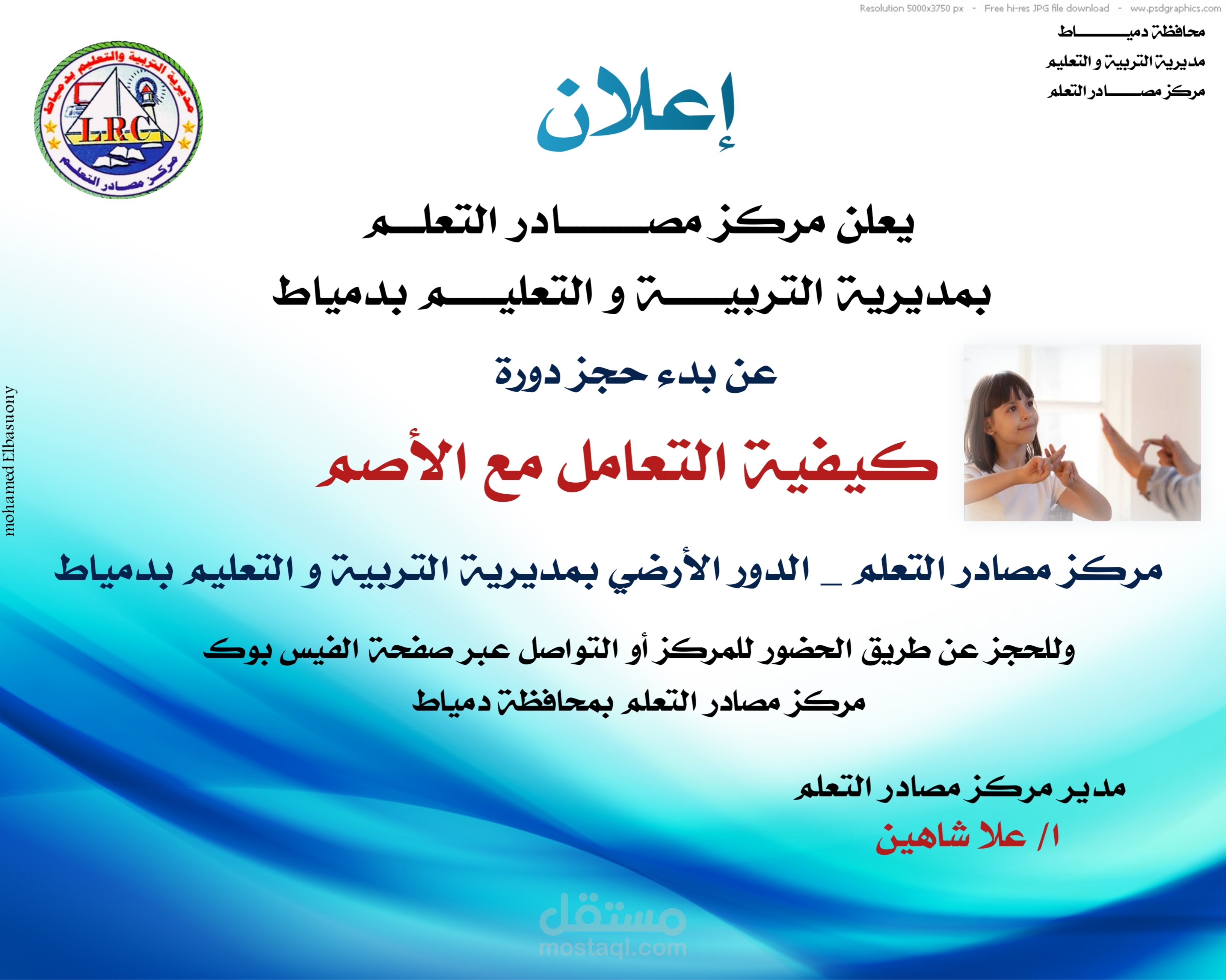 تصميم بنر اعلان عن تدريب كيفية التعامل مع الصم - لمركز مصادر تعلم