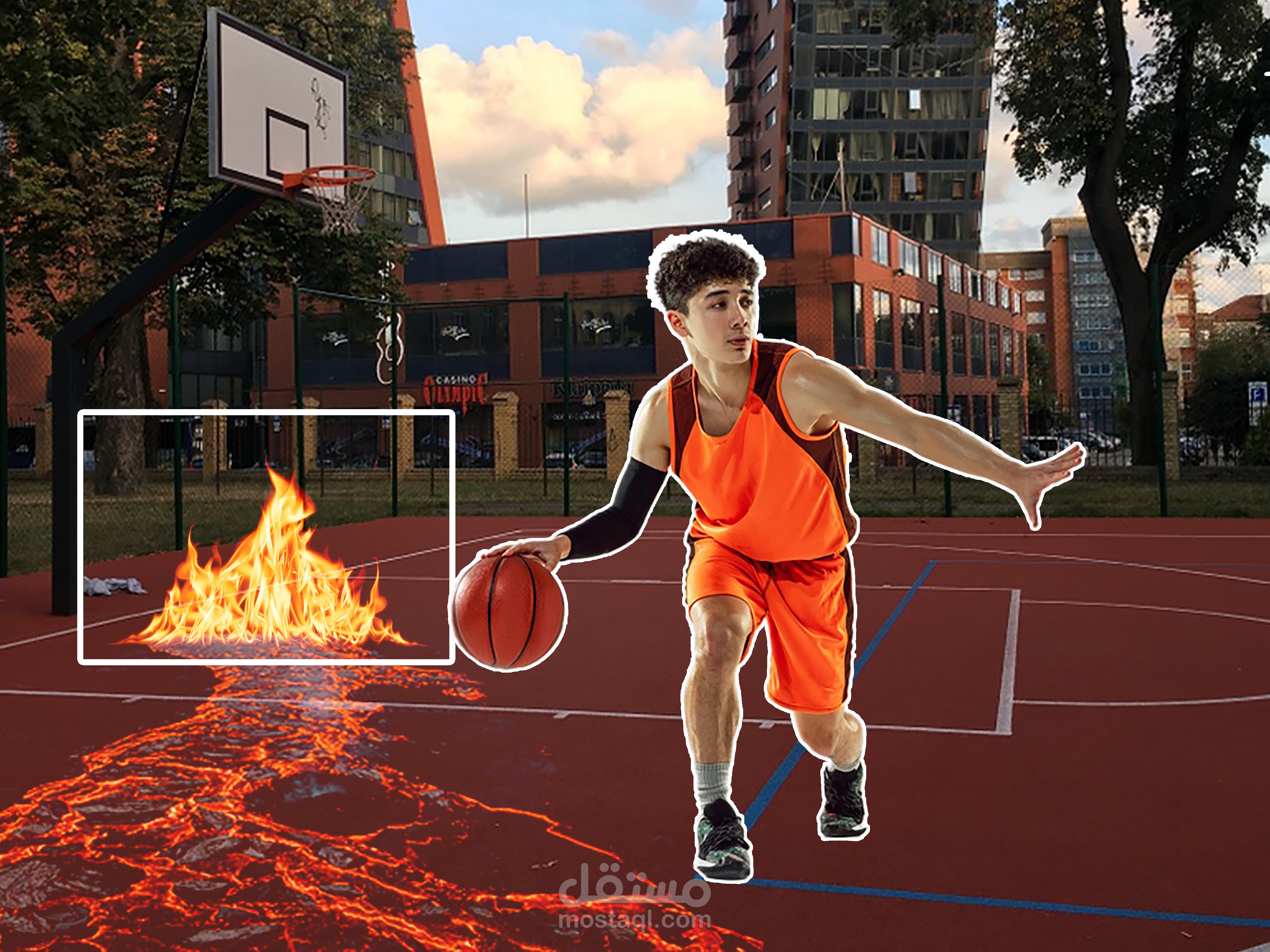 تصميم دمج صور ( لاعب فوق البركان ) Photo Manipulation