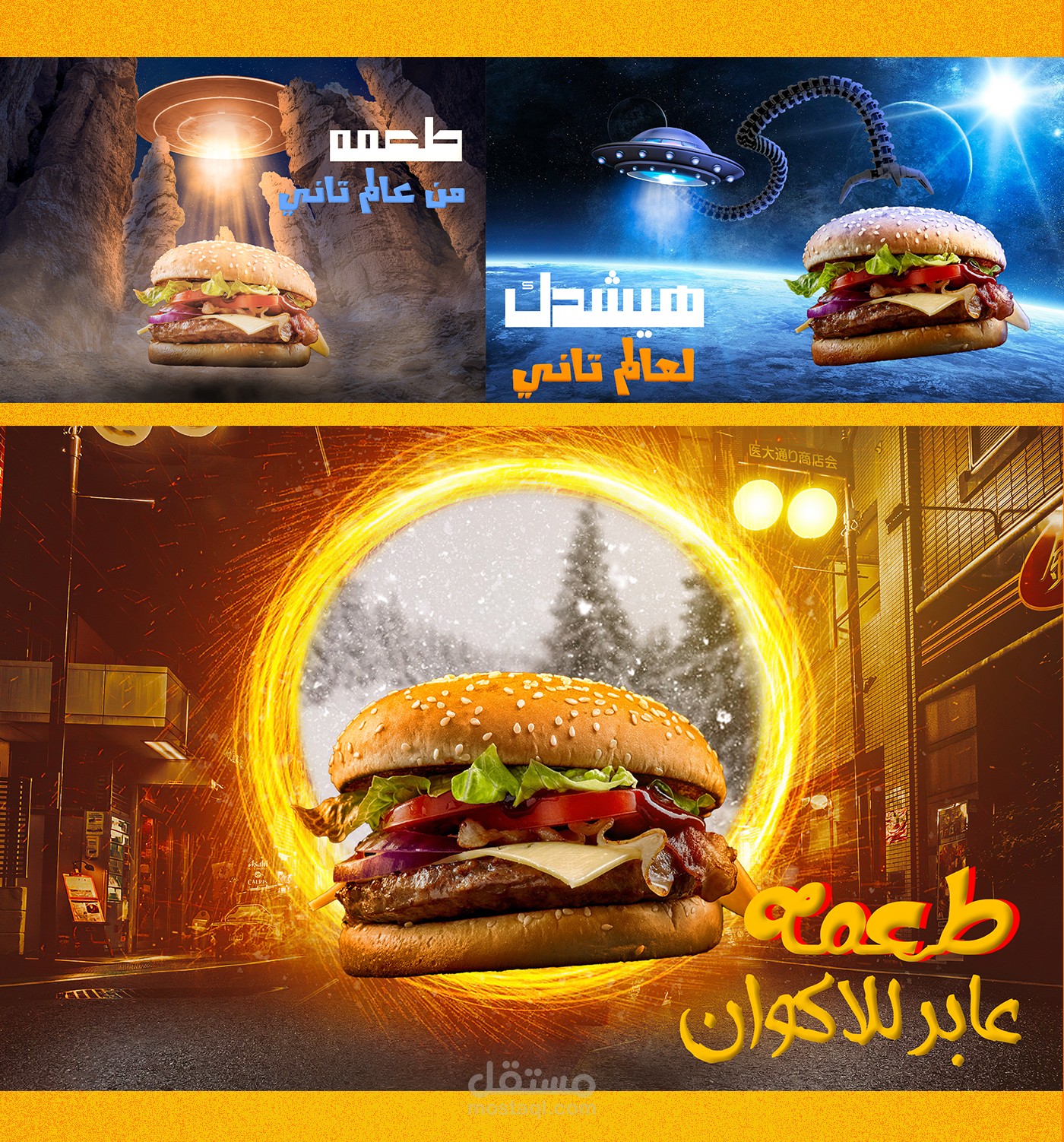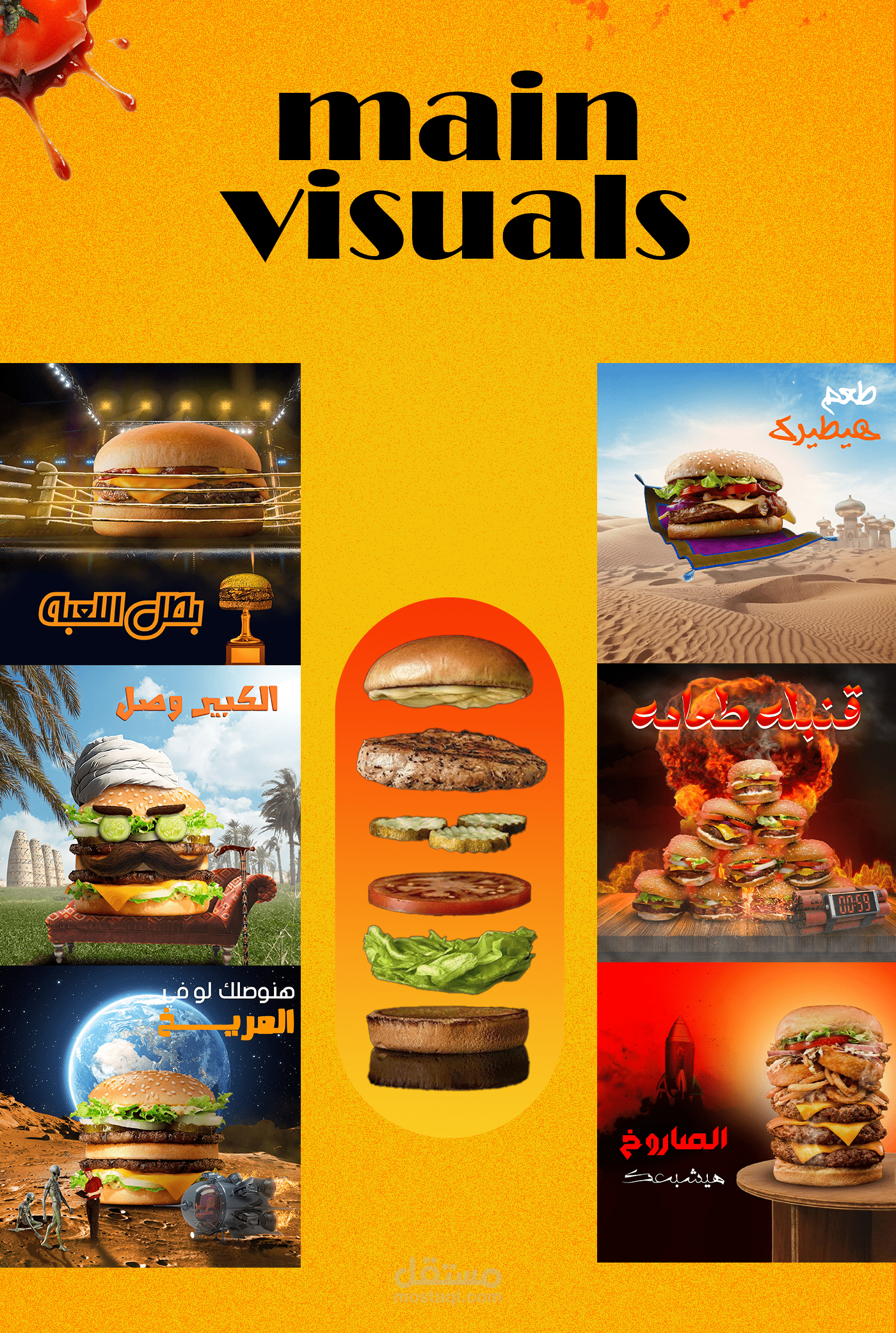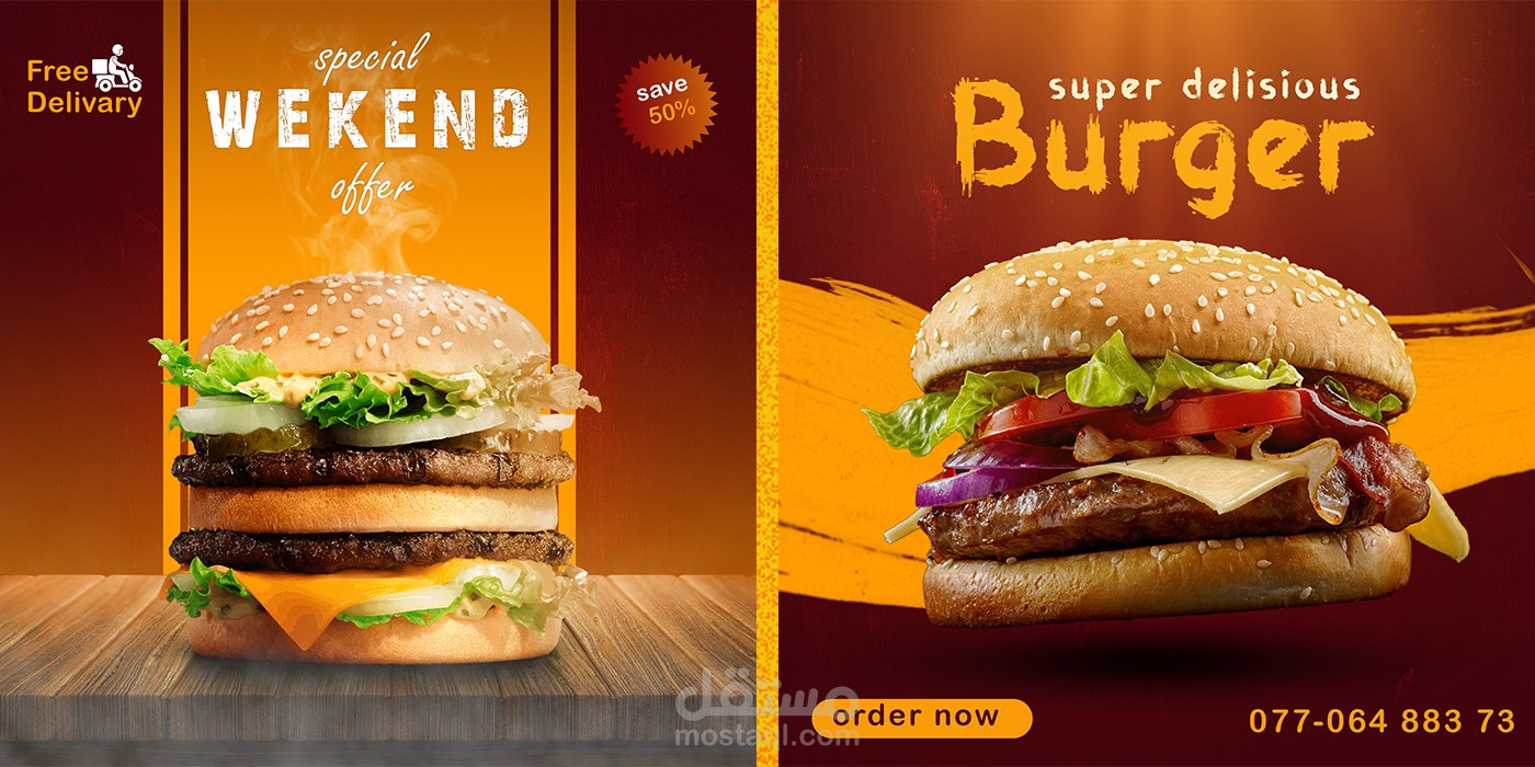هذه التصاميم لمطعم برجر طلب مني تصاميم بافكار ابداعيه