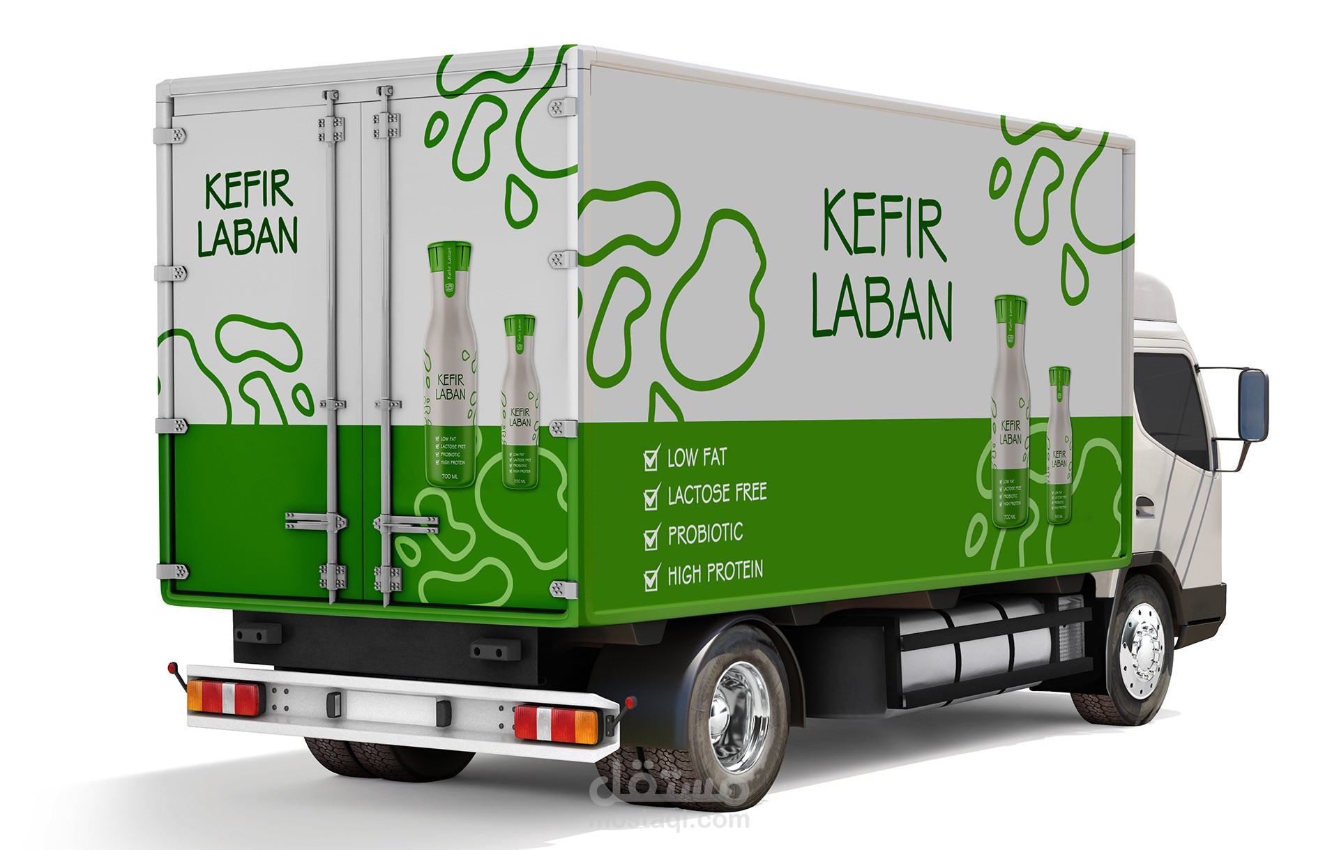 تصميم عبوة لبن كفير للشركة الكويتية للألبان KDCOW بالاضافة الي تصميم لشاحنات النقل الخاصة بالمنتج