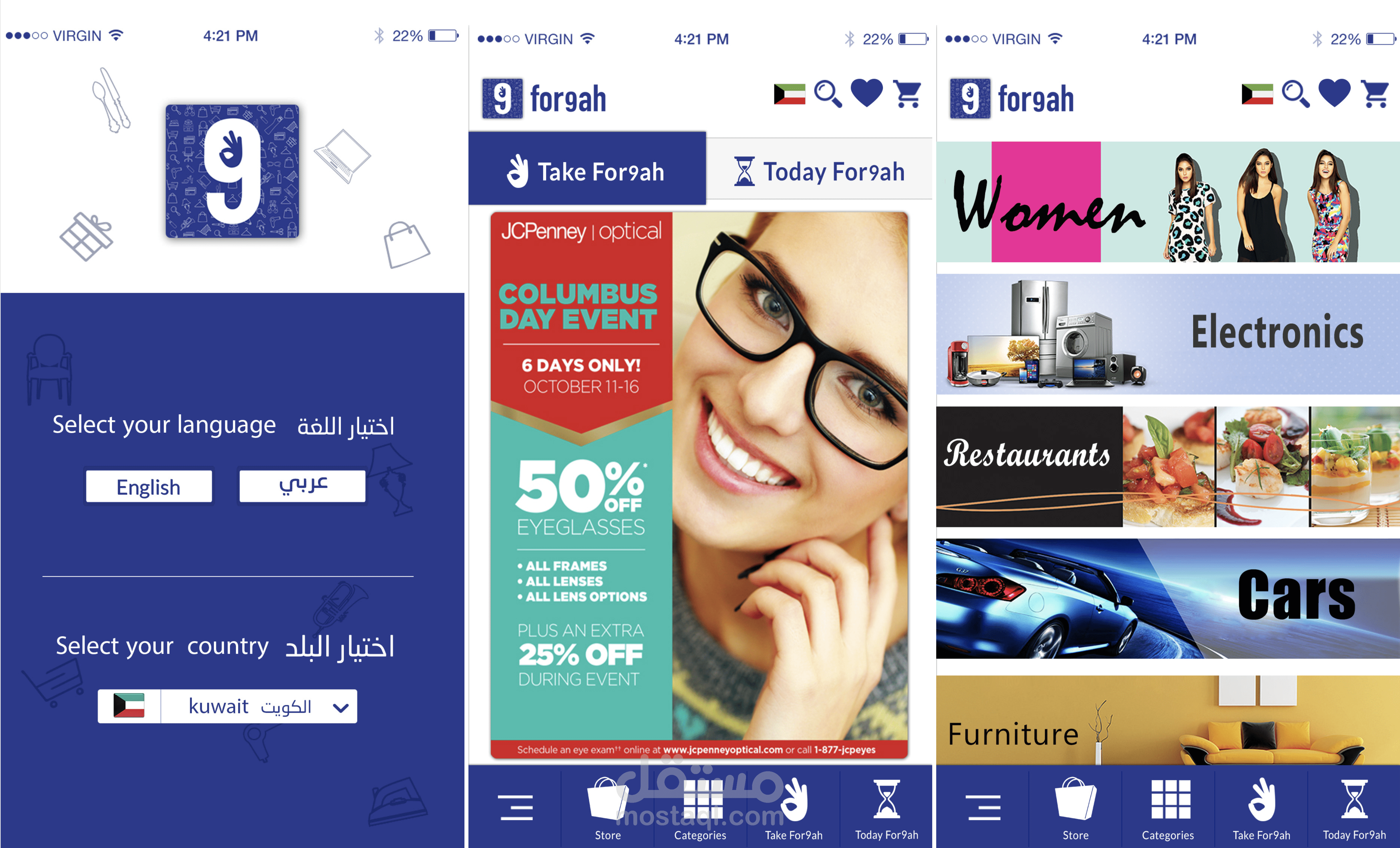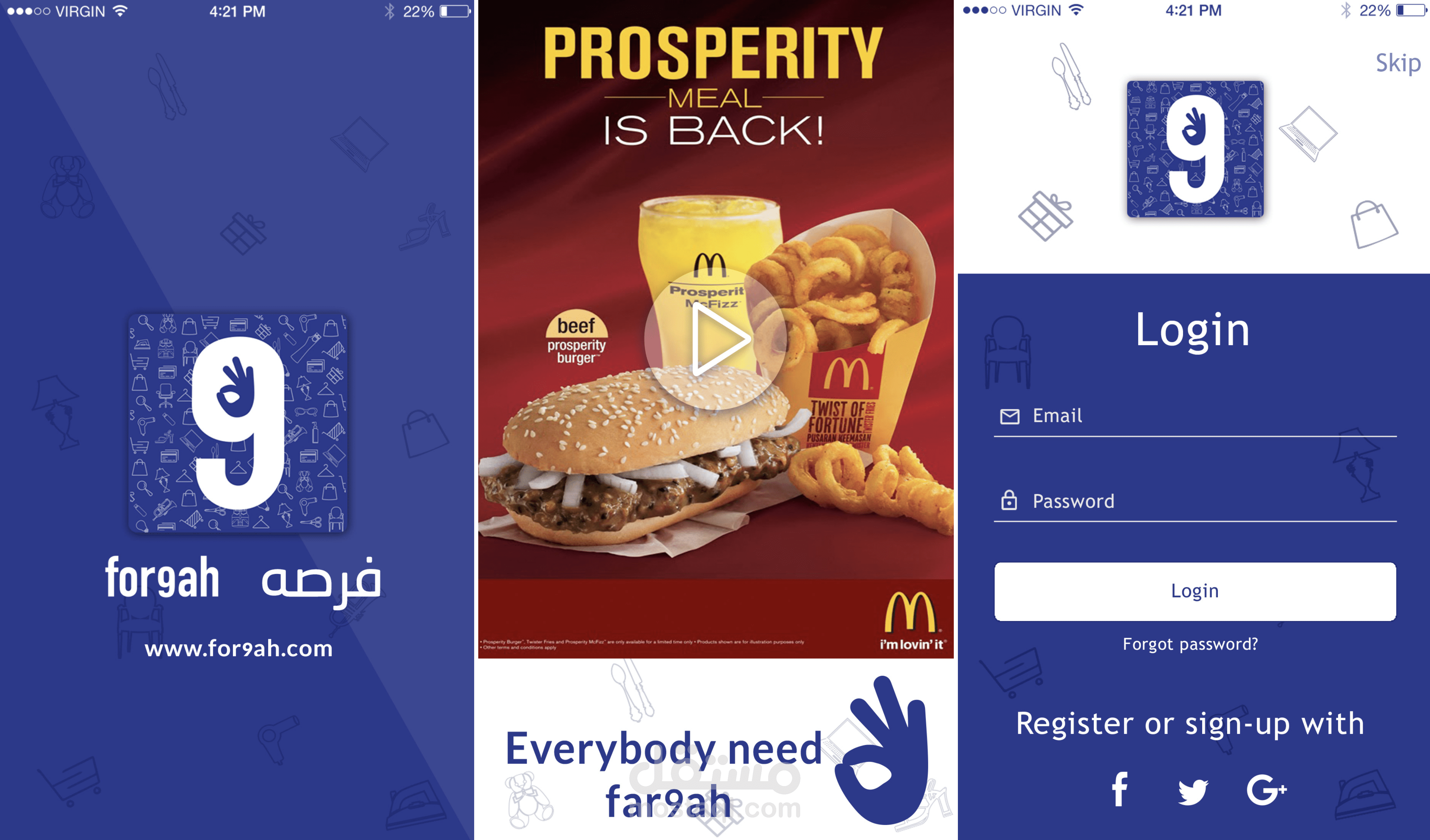 تصميم واجة المستخدم لتطبيق فرصة للبيع الاليكتروني
