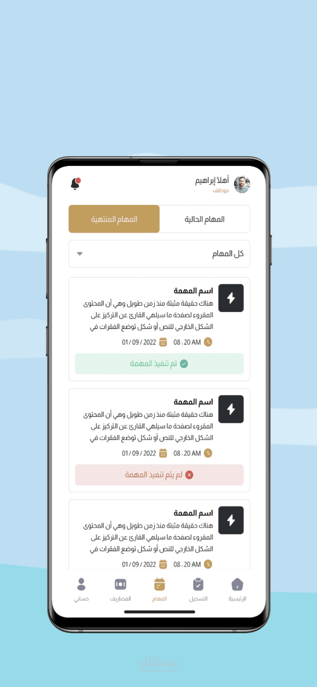 - سجل كامل بالمهام المنتهية التي أتمها الموظف.