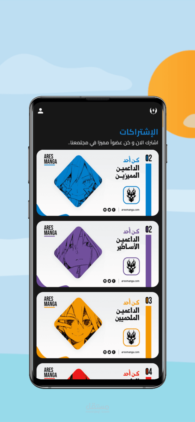 أريس مانجا هـــو تطبيــق شامل وكــامل ومميز حيث أنــه التطبيق الأول من نوعــه الذي يخول للمتابع كسب مال أو جوائز من خلال تصفحــه على التطبيق وإنجــازه للمهام، يشمــل التطبيــق أيضا عدة جوانب هي كالآتي: