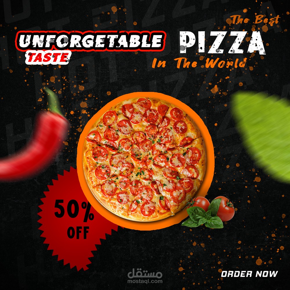 An exquisite captivating pizza advertisement designed specifically for social media platforms