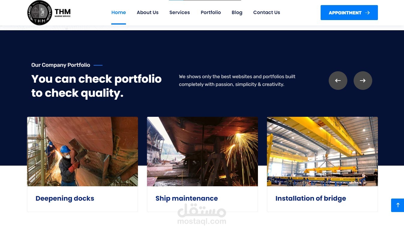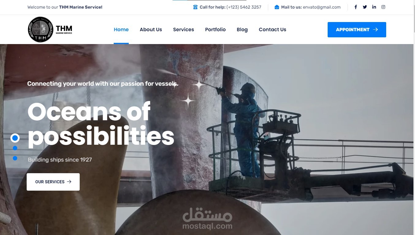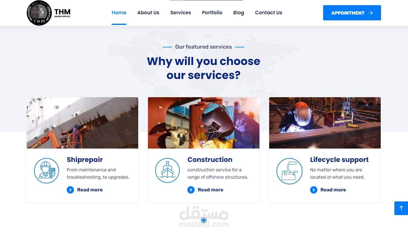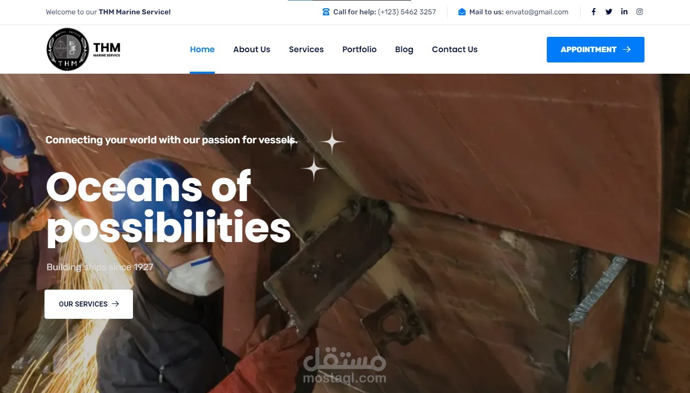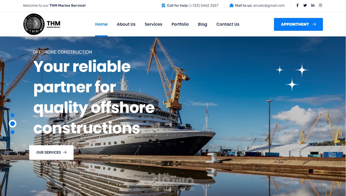 تم انشاء موقع متكامل لشركة متخصصة بصيانة السفن البحرية. باستخدام wordpress