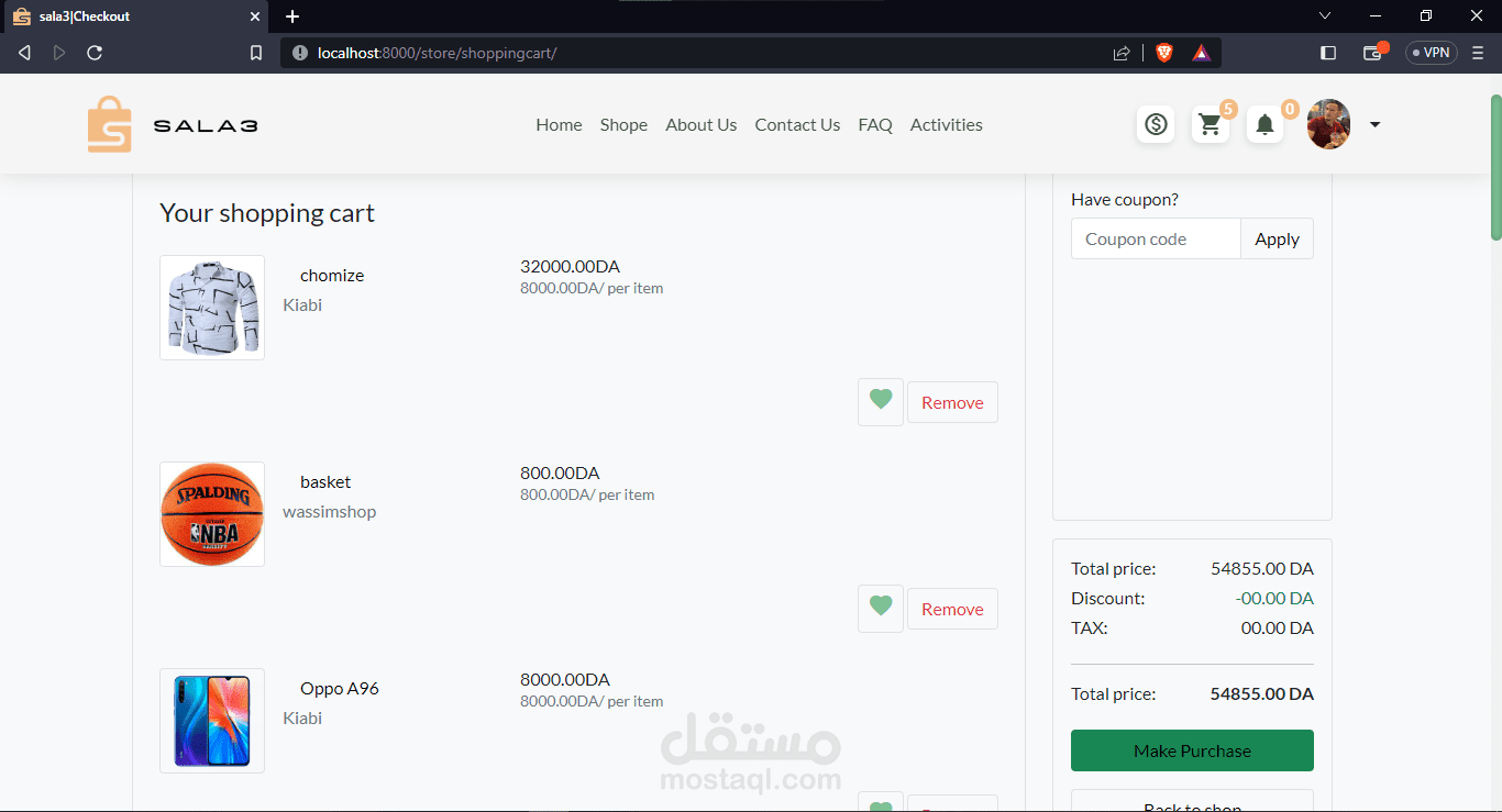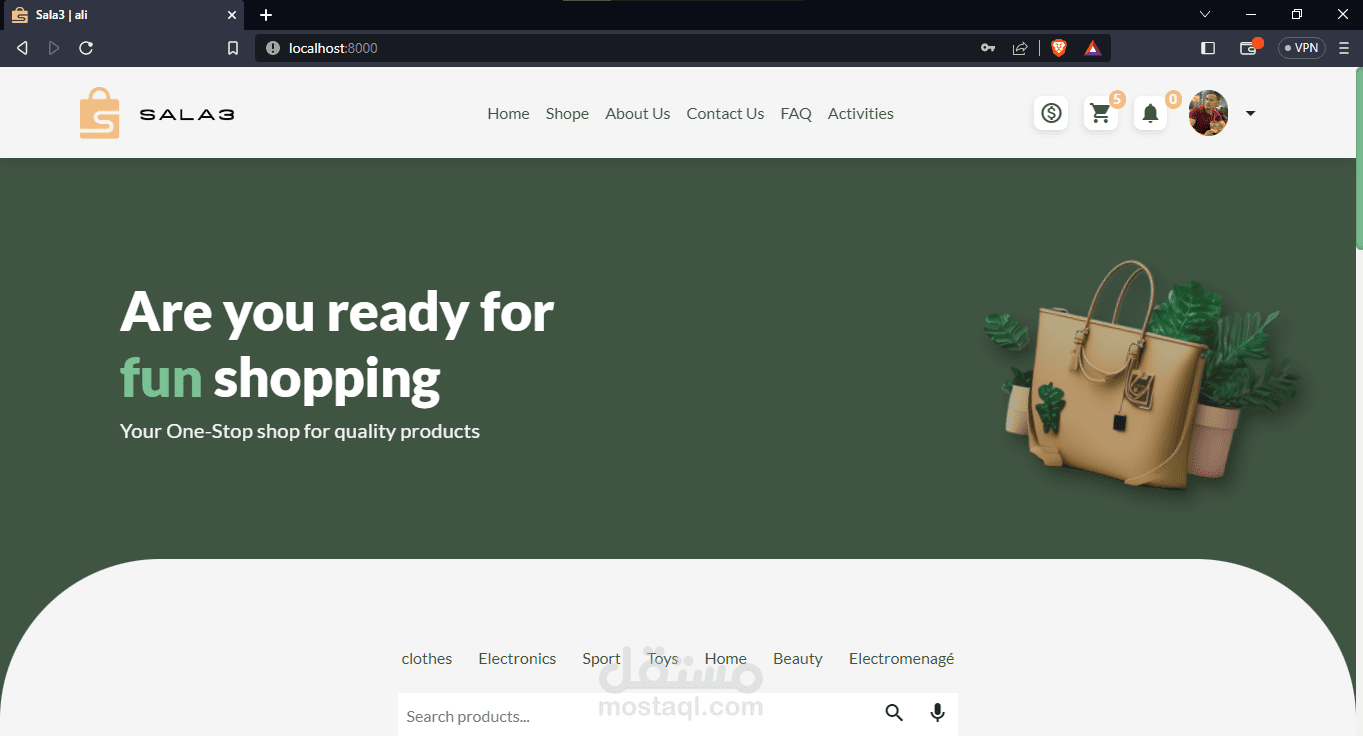 فخور بتقديم منصة التجارة الإلكترونية الخاصة بي، التي تم تطويرها باستخدام تقنيات حديثة لتحقيق تجربة متميزة للمستخدمين. في واجهة المستخدم، تعتمد المنصة على تقنيات Bootstrap لتحقيق تصميم سهل الاستخدام والاستجابة مع استخدام CSS و JavaScript و jQuery، مع إضافة الديناميكية والسلاسة باستخدام مكتبة AJAX ومكتبة SweetAlerts لرسائل التنبيه الجميلة.