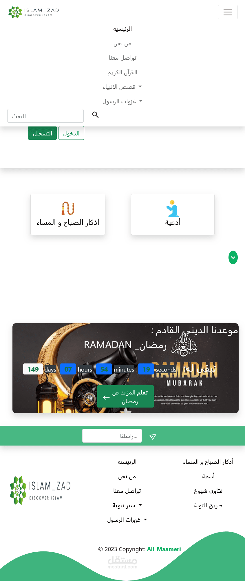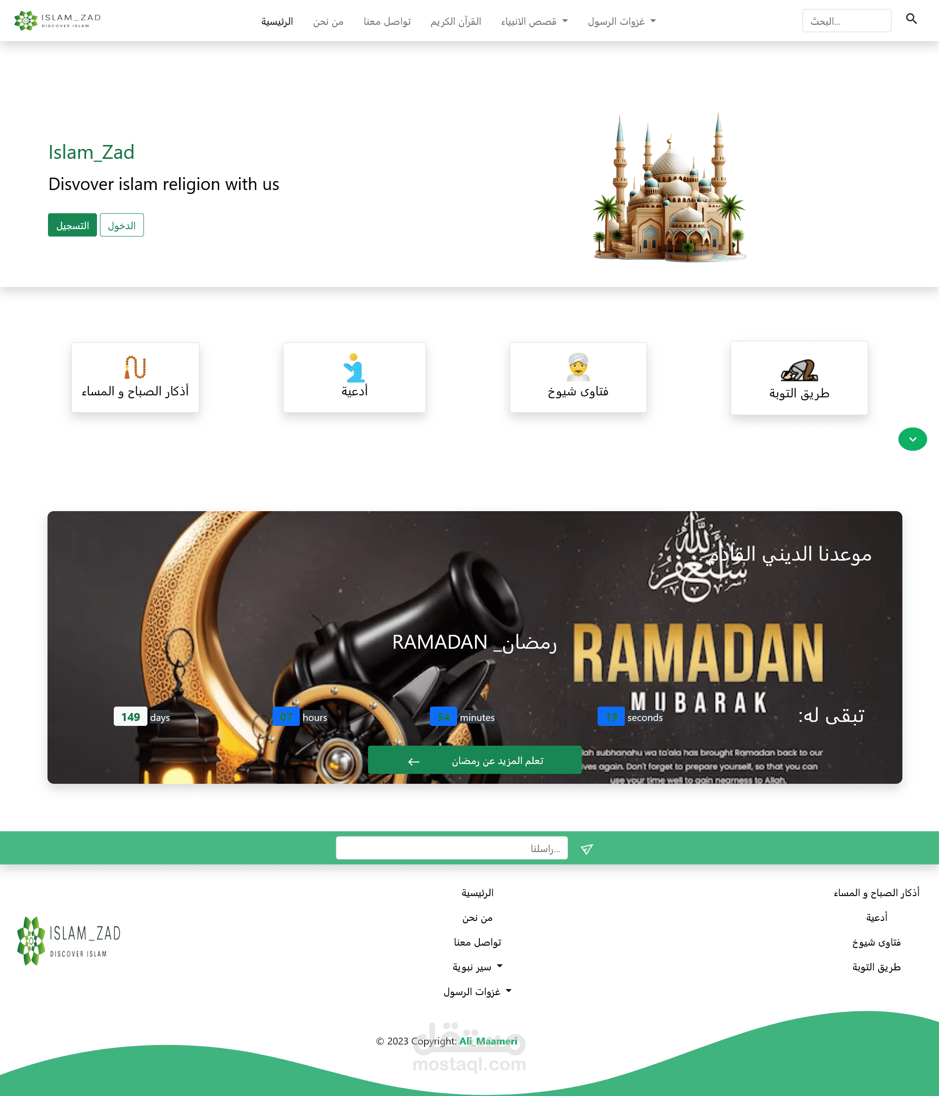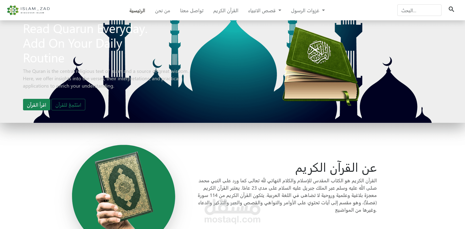 تم تصميم الموقع باستخدام تقنيات Bootstrap لتحقيق استجابة كاملة على جميع الأجهزة، مما يجعل المحتوى الإسلامي متاحًا للجميع في أي وقت ومكان. يتميز الموقع بواجهة مستخدم سهلة وجذابة.