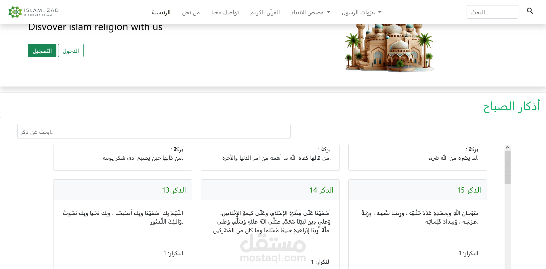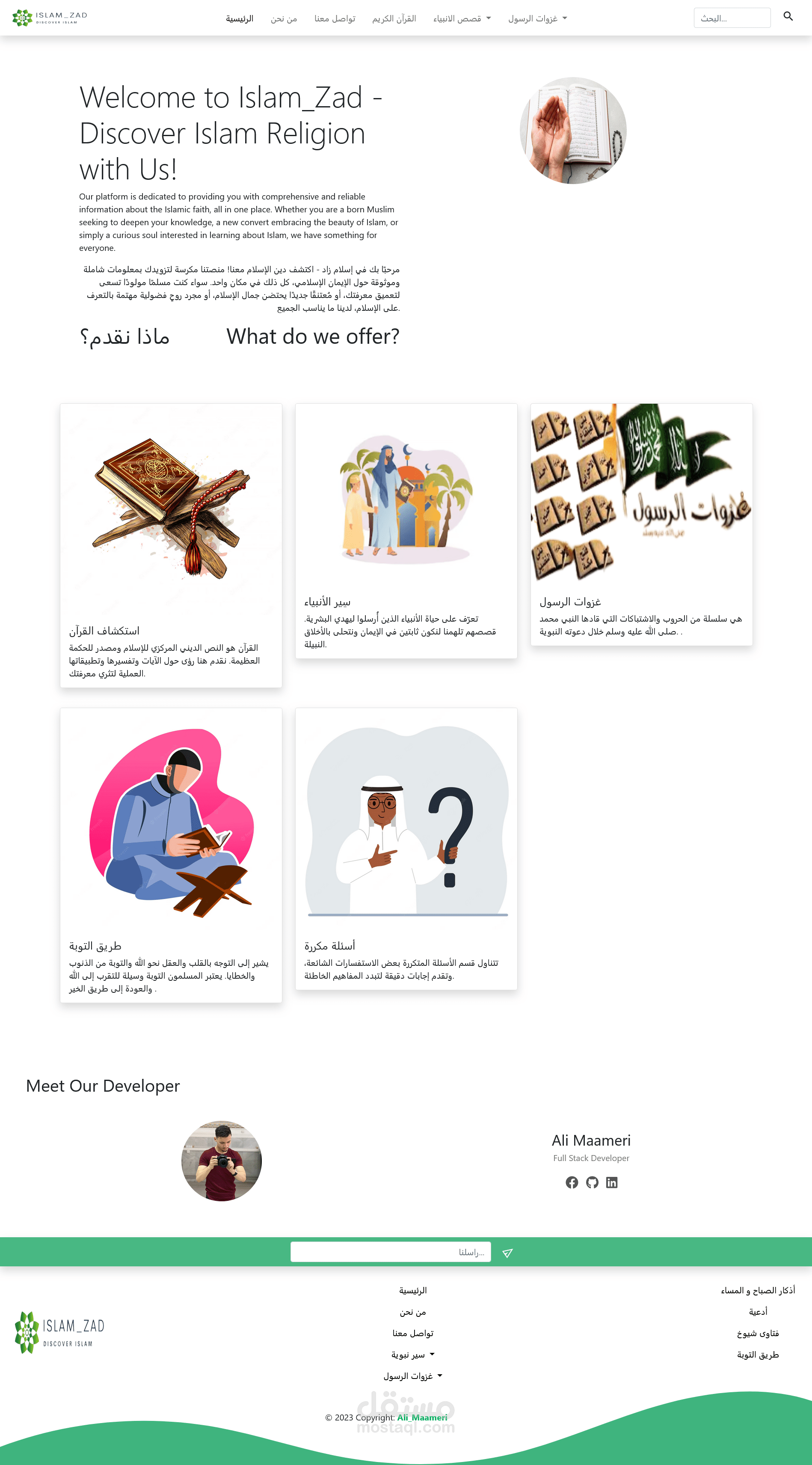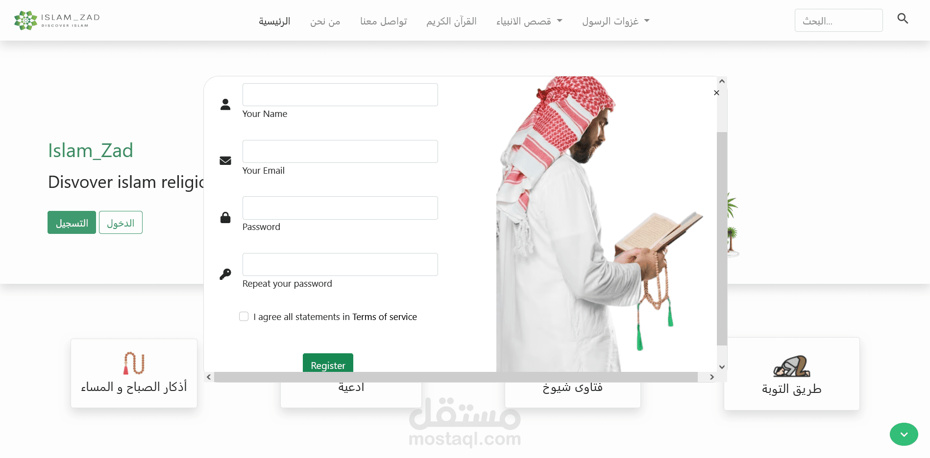 تم تصميم الموقع باستخدام تقنيات Bootstrap لتحقيق استجابة كاملة على جميع الأجهزة، مما يجعل المحتوى الإسلامي متاحًا للجميع في أي وقت ومكان. يتميز الموقع بواجهة مستخدم سهلة وجذابة.