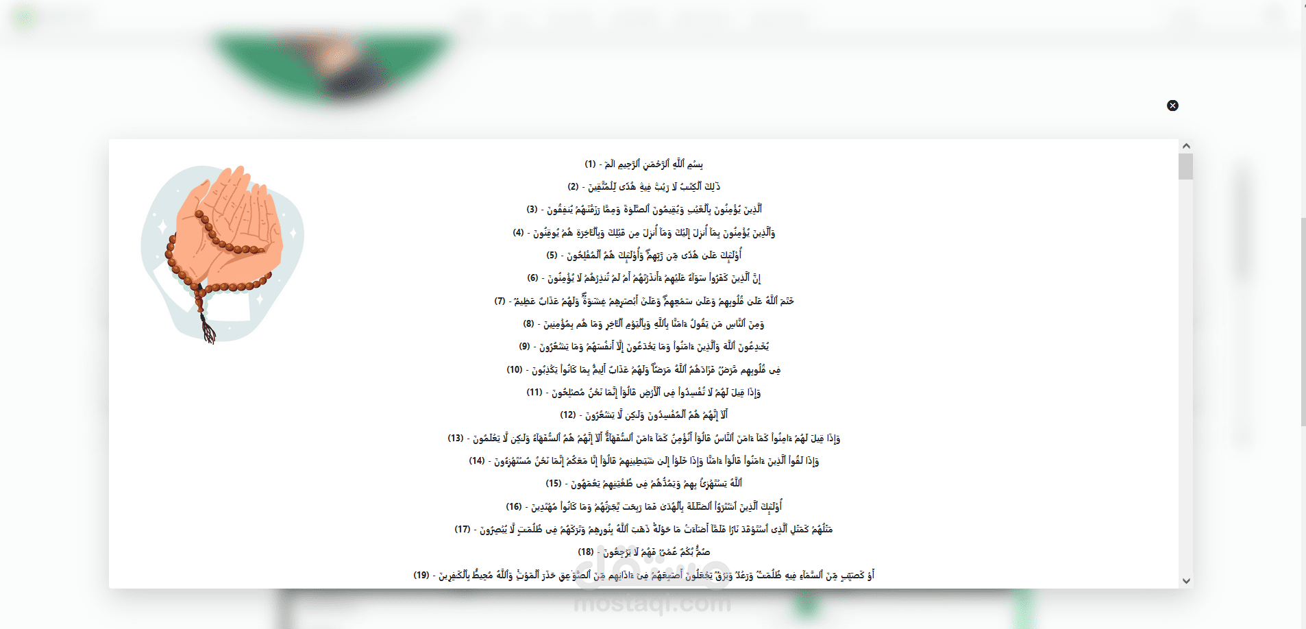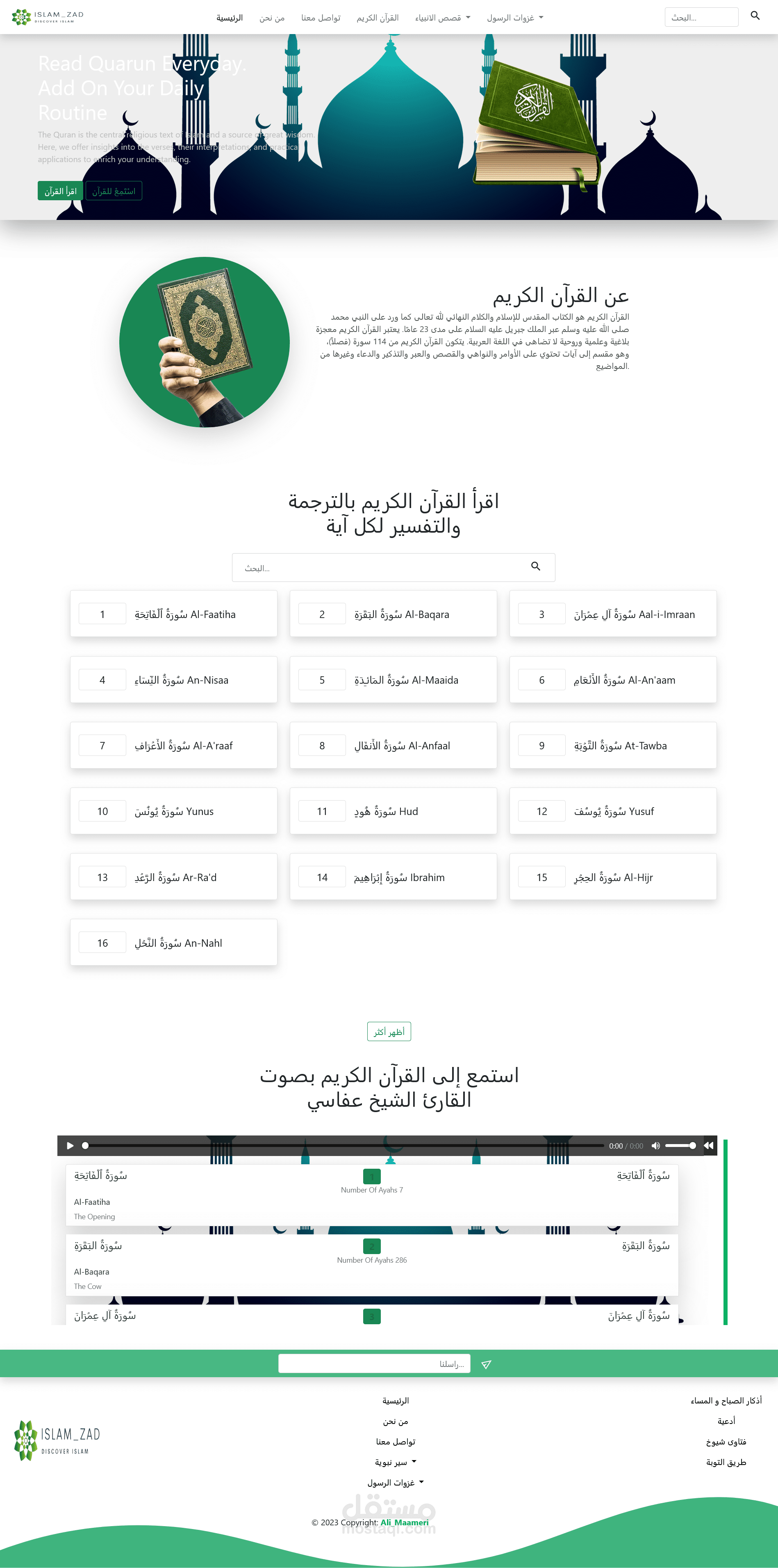 تم دمج APIs إسلامية للقرآن الكريم والقراءة الصوتية، مما يمكن المستخدمين من الوصول إلى النص الكامل للقرآن والاستماع إلى تلاوته بصوت نقي. يبرز الموقع بفضل استجابته التامة، حيث يمكن تصفحه بكل سهولة على مختلف الأجهزة.