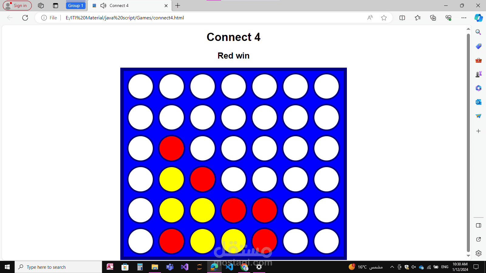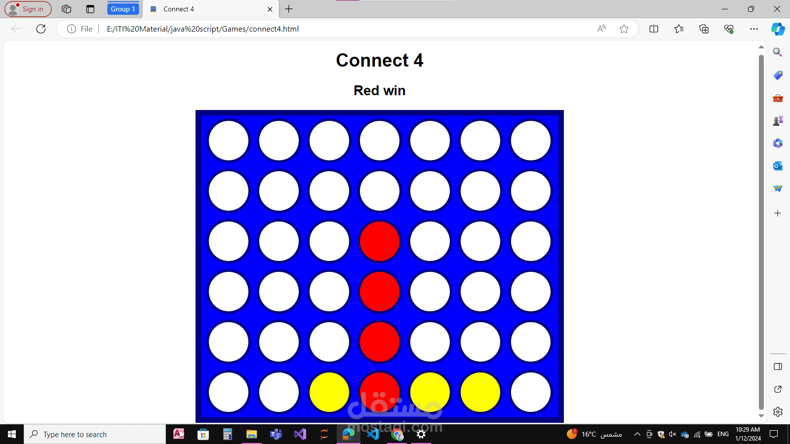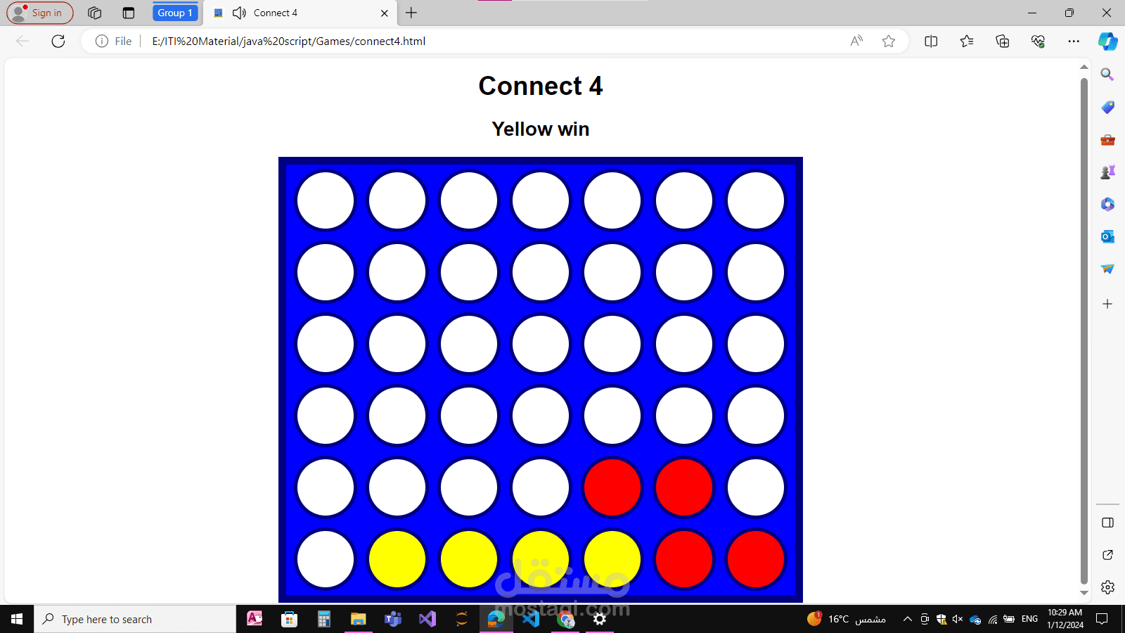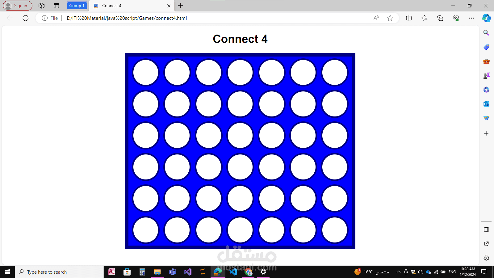 لقد قمت بعمل لعبة connect 4 بواسطة HTML , CSS , JS و جعلت اللعبة تصدر صوتا عندما يلعب اي كل من الطرفين وايضا عندما يفوز احد الطرفين . لقد كان هذا ممتع للغاية .