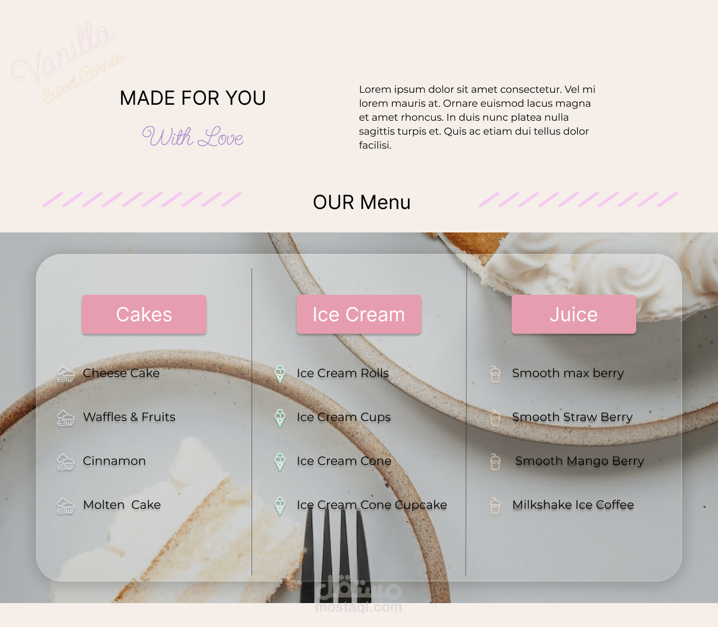 vanilla ابلكيشن للحلويات و المشروبات يمكنك حجز مشروبك او الكيك المفضل لديك و توصيل لي اي مكان يمكنك ايضا حجز طاوله في المطعم مع مشروبك