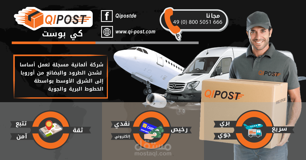 تصميم إعلانات ممولة لشركة شحن بالصور الحية و به تفاصيل الاتصال و الخدمة و الامتيازات بشكل مختصر و مفهوم و تحسين شعار - احد مشاريع مستقل