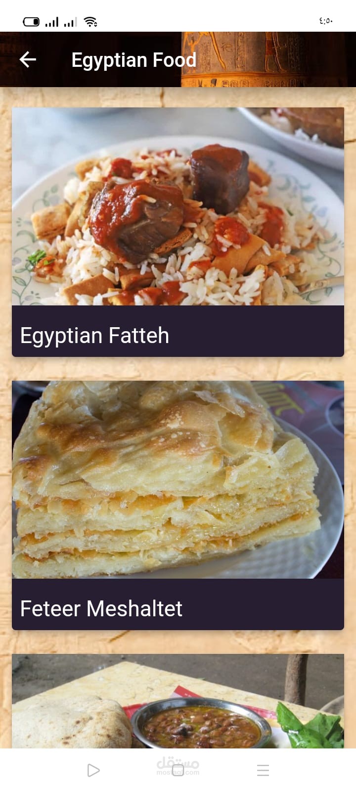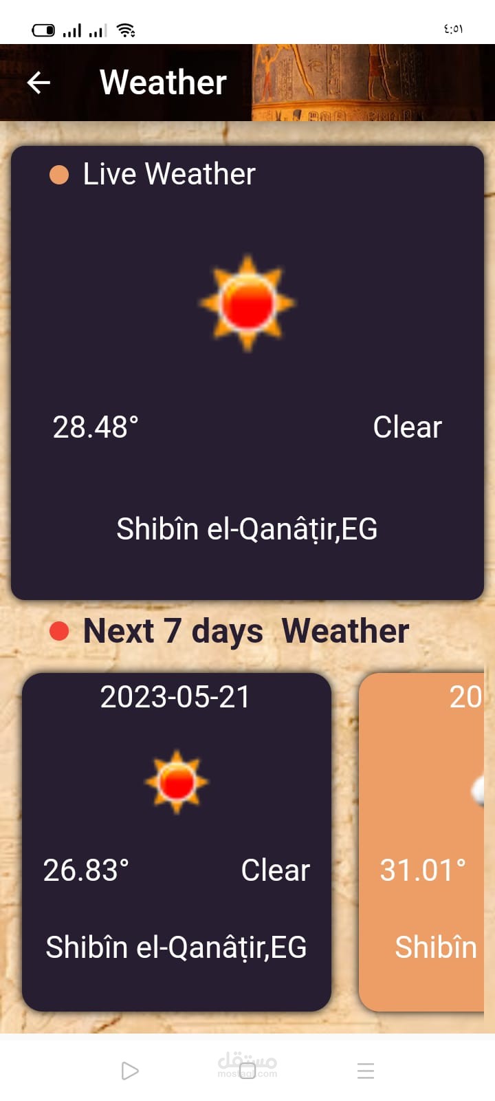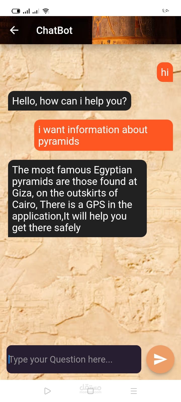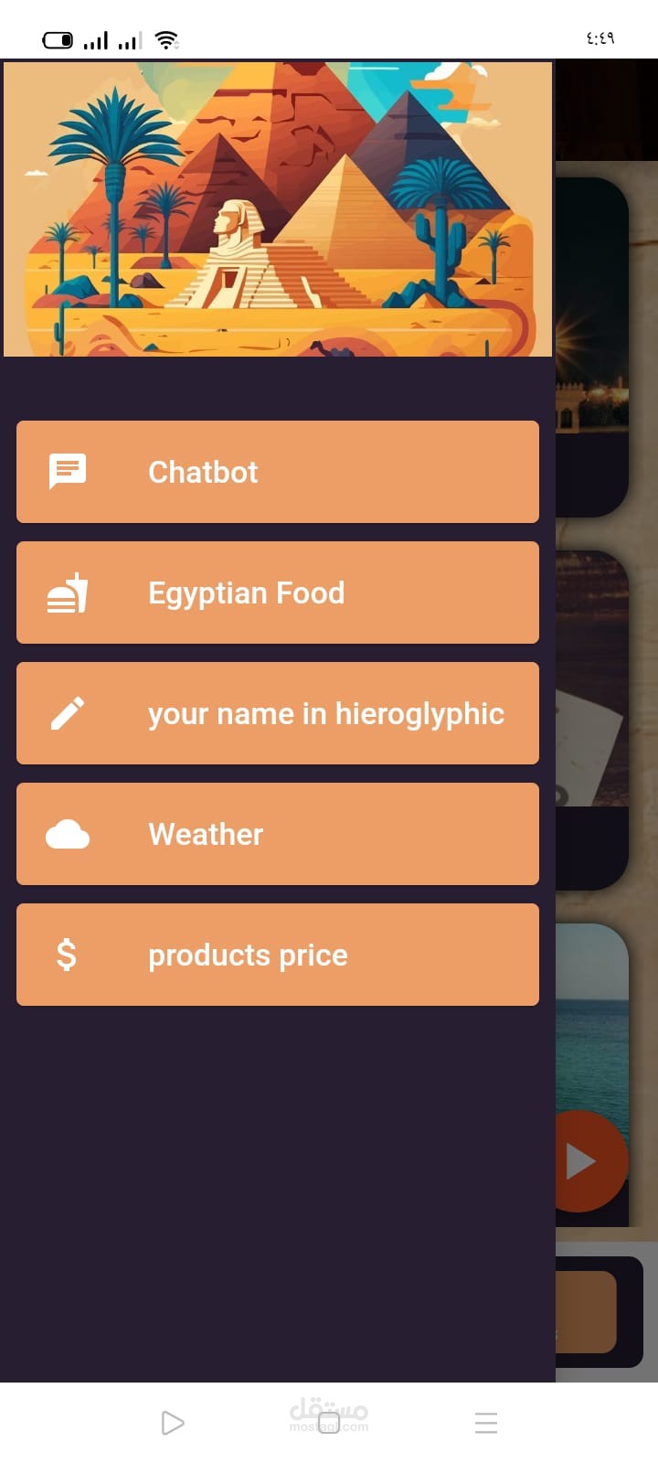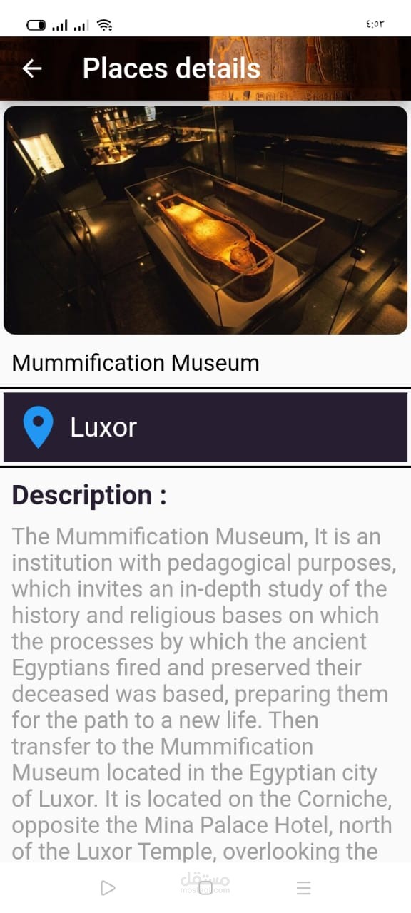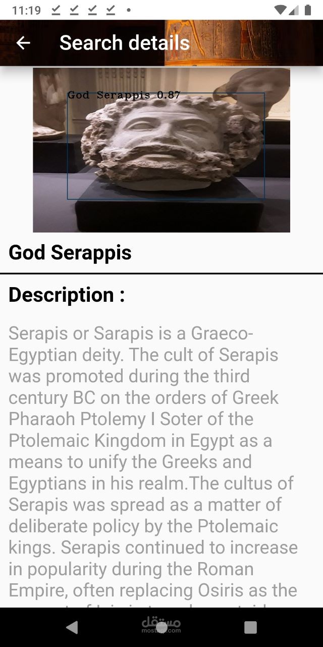 موبايل ابلكيشن باستخدام فلاتر يوجد به معلومات عن مصر وآثارها وايضا استخدام الذكاء الاصطناعي للتعرف على التماثيل وعرض معلومات عنها