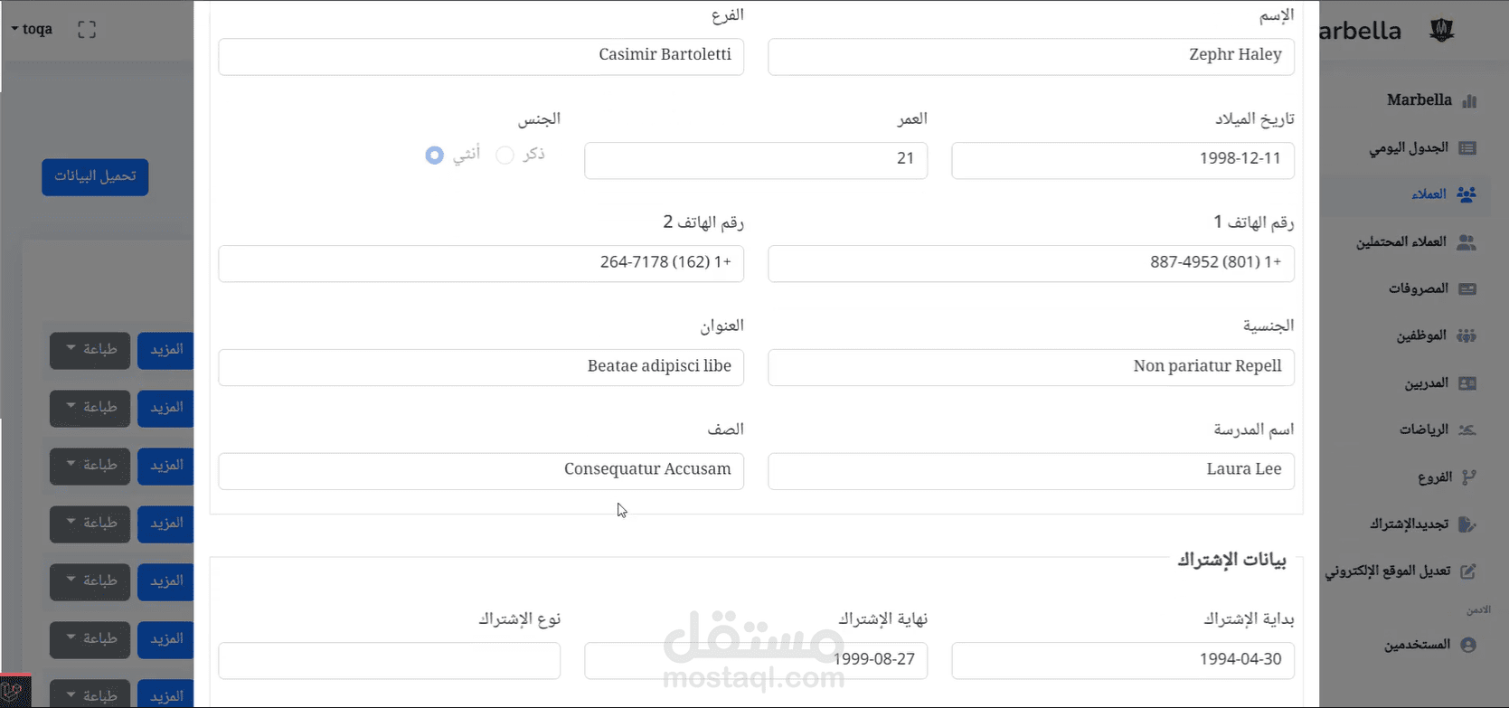 نظام إدارة نادي ماربيا الرياضي (CRM والمحفظة)