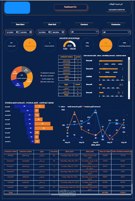 عمل داشبورد و تحليل بيانات لمؤاشرات اداره مشاريع عمل خاصه بشركه الكهرباء السعوديه