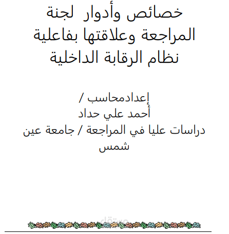 يتضمن العمل بحث حول دور لجان المراجعة المنبثقة عن مجلس ادارة الشركات في تحسين جودة المراجعة وبالتالي تحسين جودة التقارير المالية والحد من اعداد التقارير المالية المضللة والتي لا تعبر عن المركز المالي والربح الحقيقي للمنشأة
