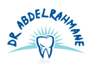 شعار مميز لعيادة اسنان حيث يوضح الشعار اسم الطبيب و عمله