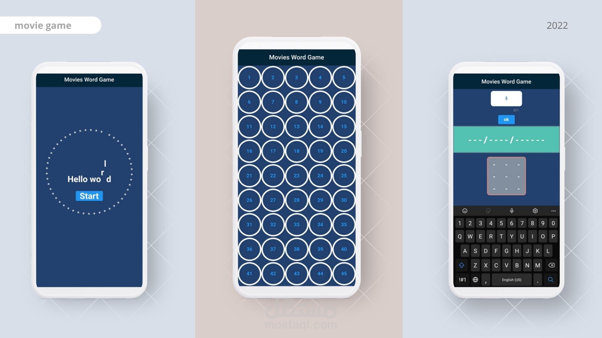 لعبة بسيطة لتخمين اسماء الأفلام مع وجود عدد من المحاولات وعدد من المستويات المختلفة