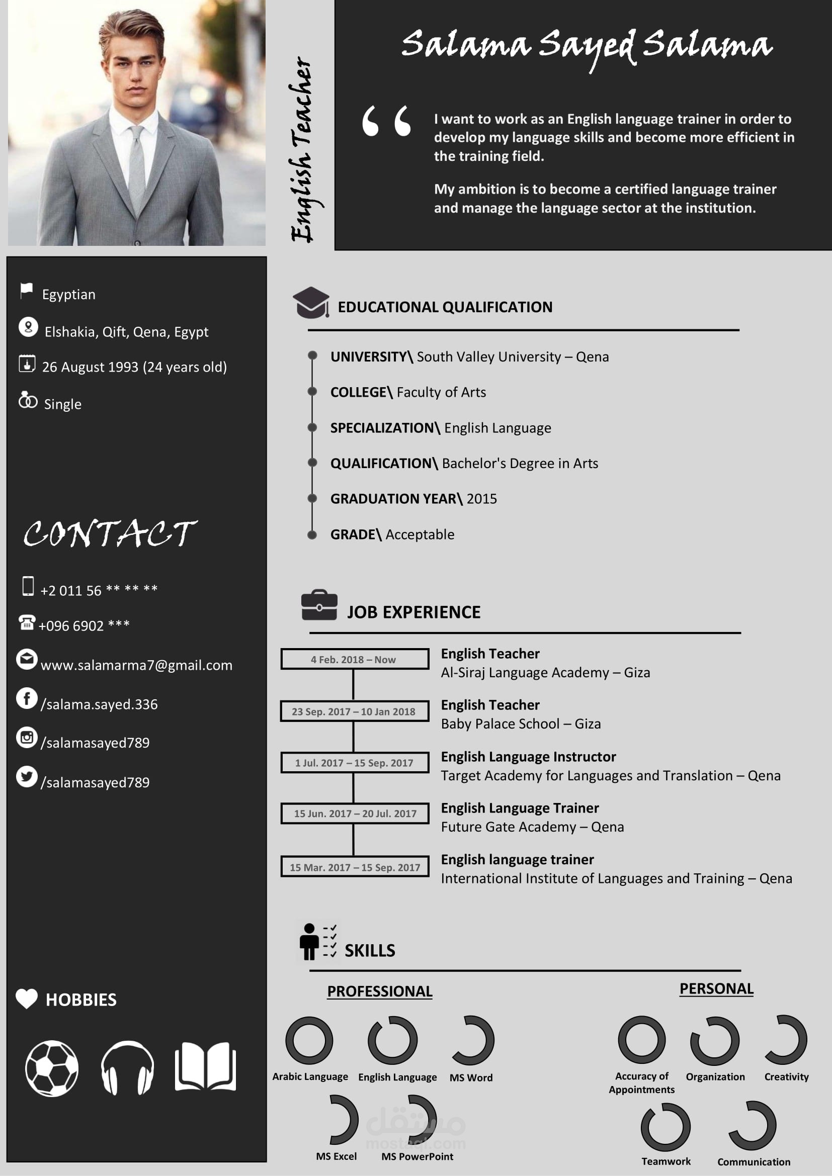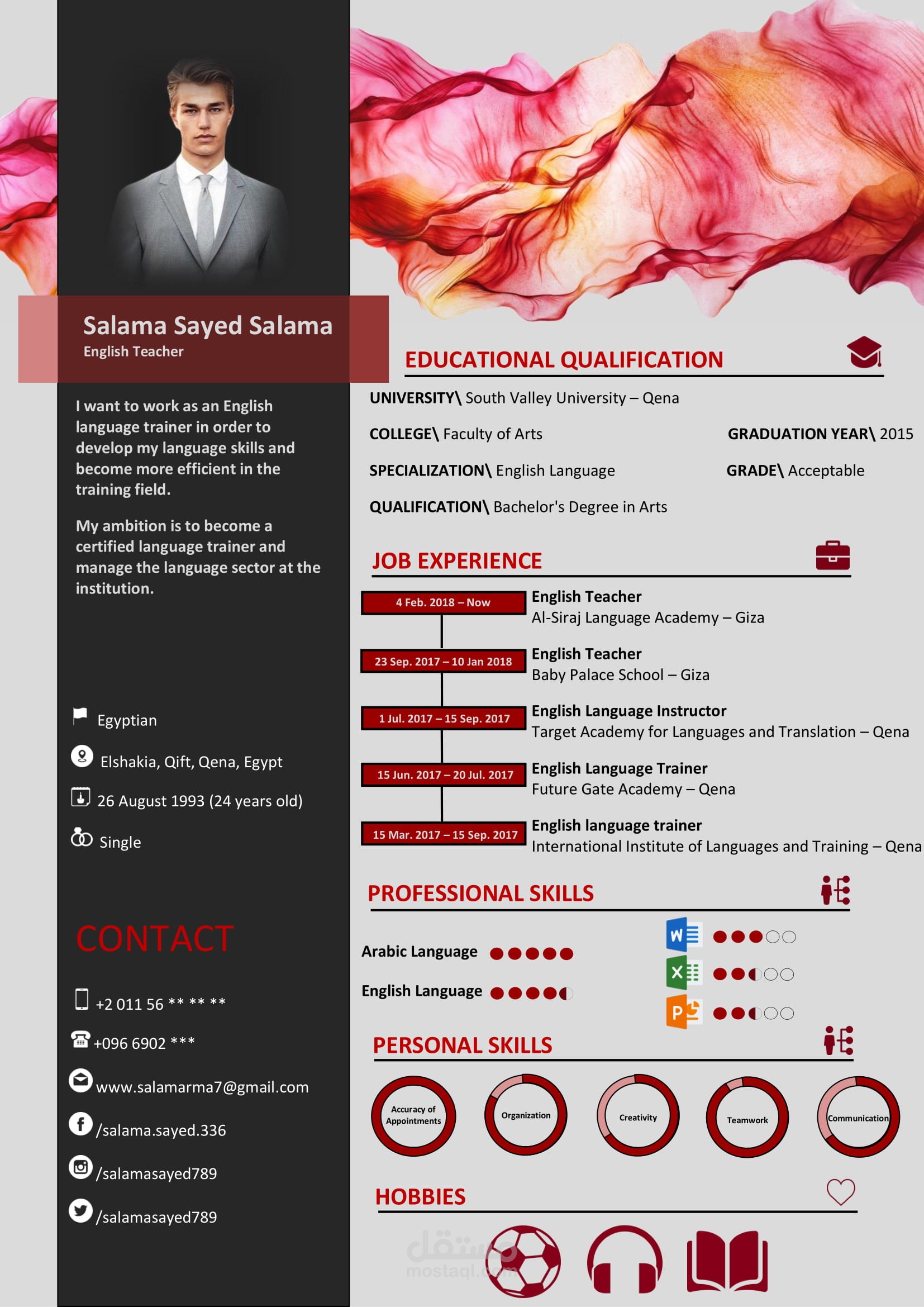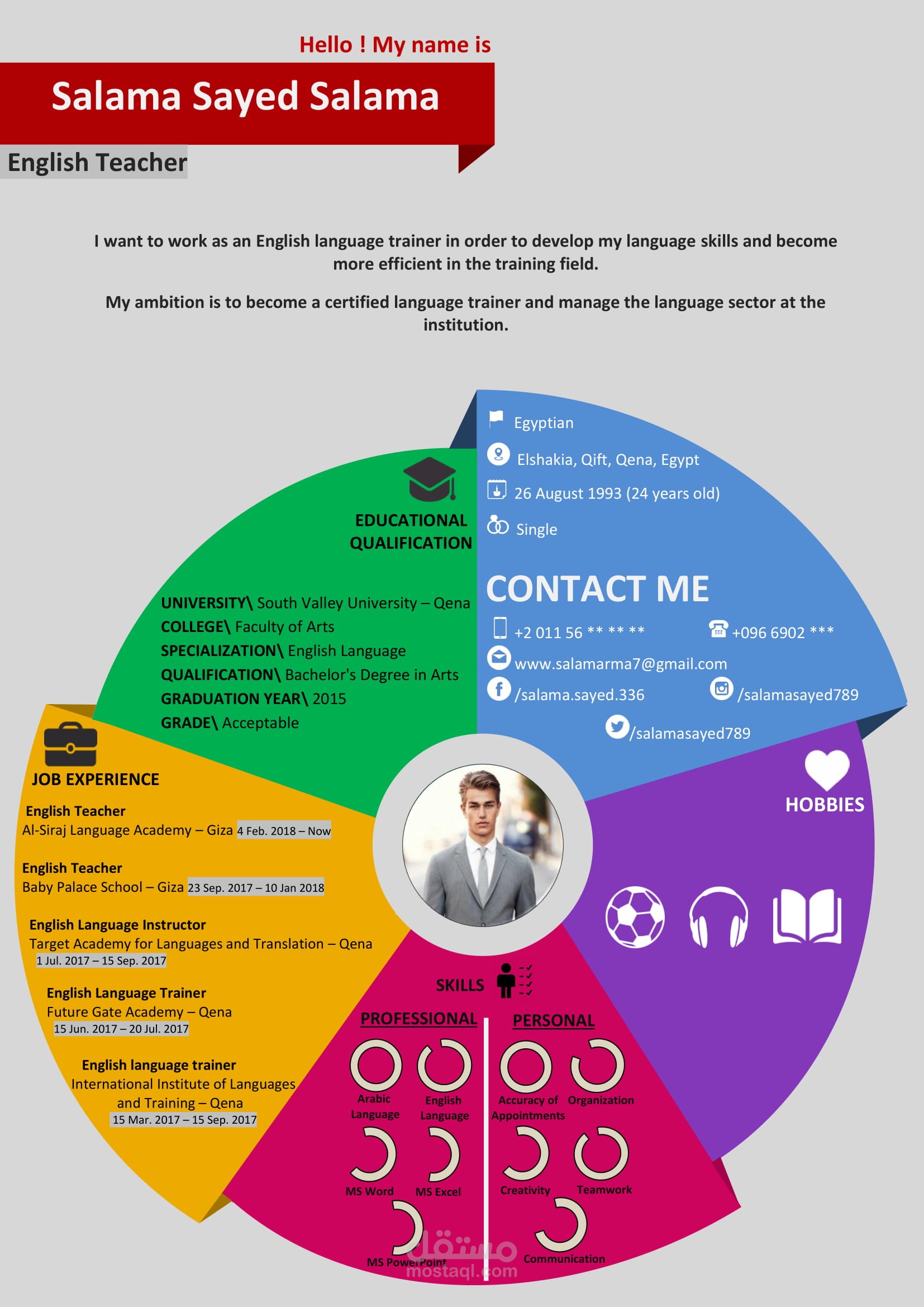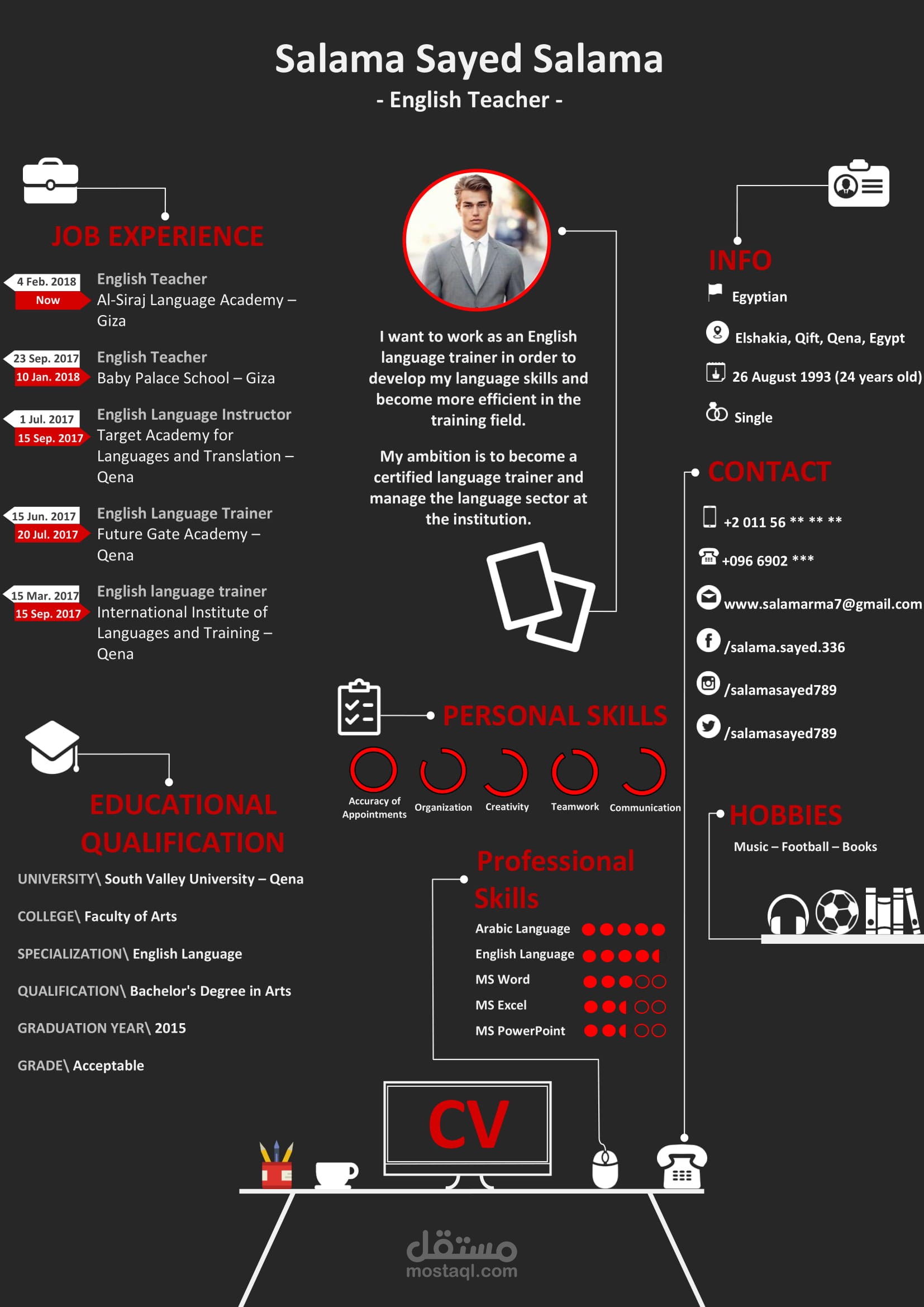 بعد بحث كثير من قبل والاضطلاع علي كل مزايا السير التي علي الانترنت فقد صنعت نماذج حصرية 100% تجمع بين كل مزايا السير الأخري وأكثر من ذلك بتصاميم جذابة وعصرية علي شكل انفوجرافيك وترضي جميع الاذواق وان شاء الله ستميزك عن غيرك وستجعل صاحب العمل ينجذب الي سيرتك وسيعرف أنك شخص يحب التنسيق والابداع والتجديد ! ــــــــــــ