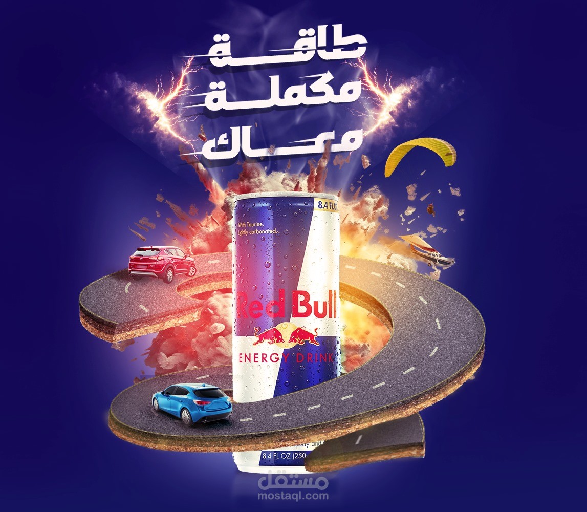 تصميم إعلان إبداعي احترافي لمنتج مشروبات، يعبر عن طاقة المنتج وانتعاشه بأسلوب بصري جذاب. تم تنفيذ العمل باستخدام برامج التصميم مع الاهتمام بالتفاصيل والهوية البصرية للعلامة التجارية. الإعلان مناسب للنشر الرقمي والطباعة بجودة عالية.