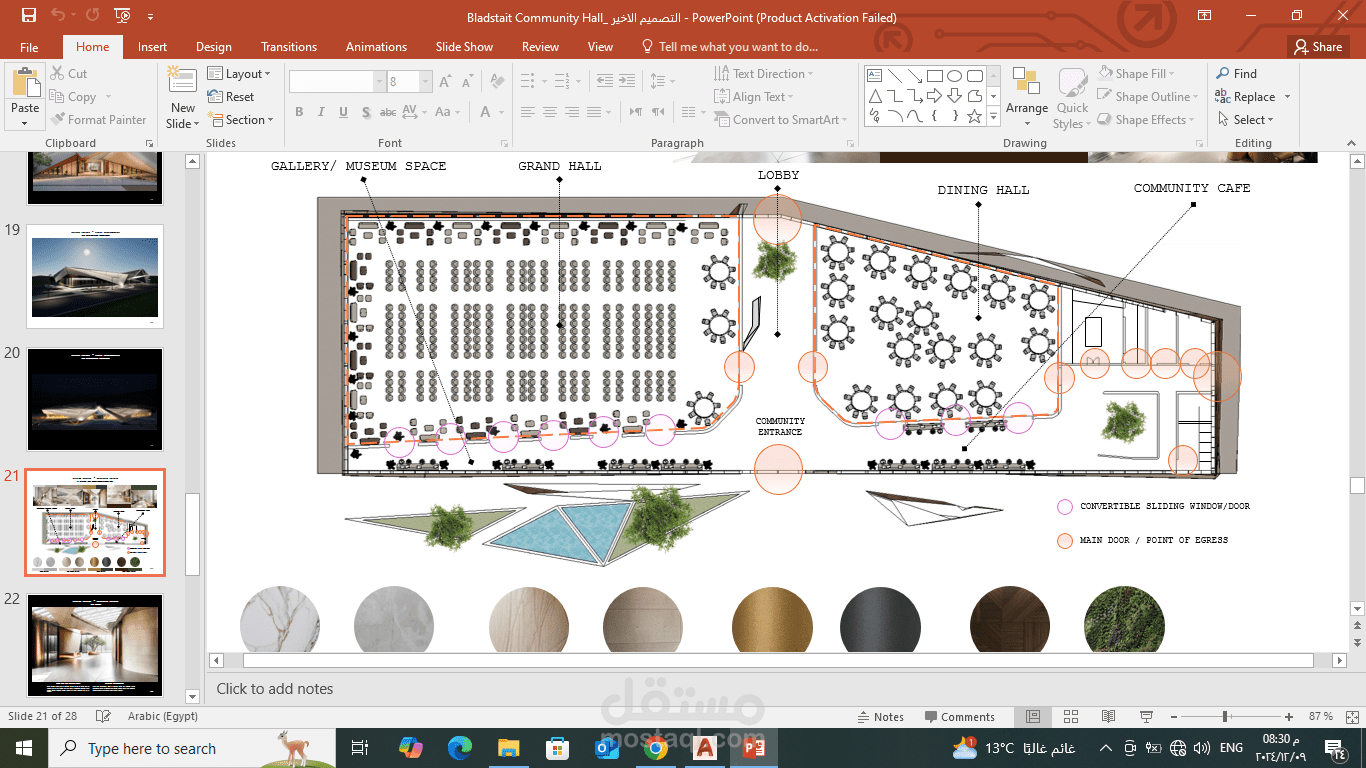 تصميم واعداد اللوحات التنفيذية لمبني اجتماعات شهير في دولة عمان .