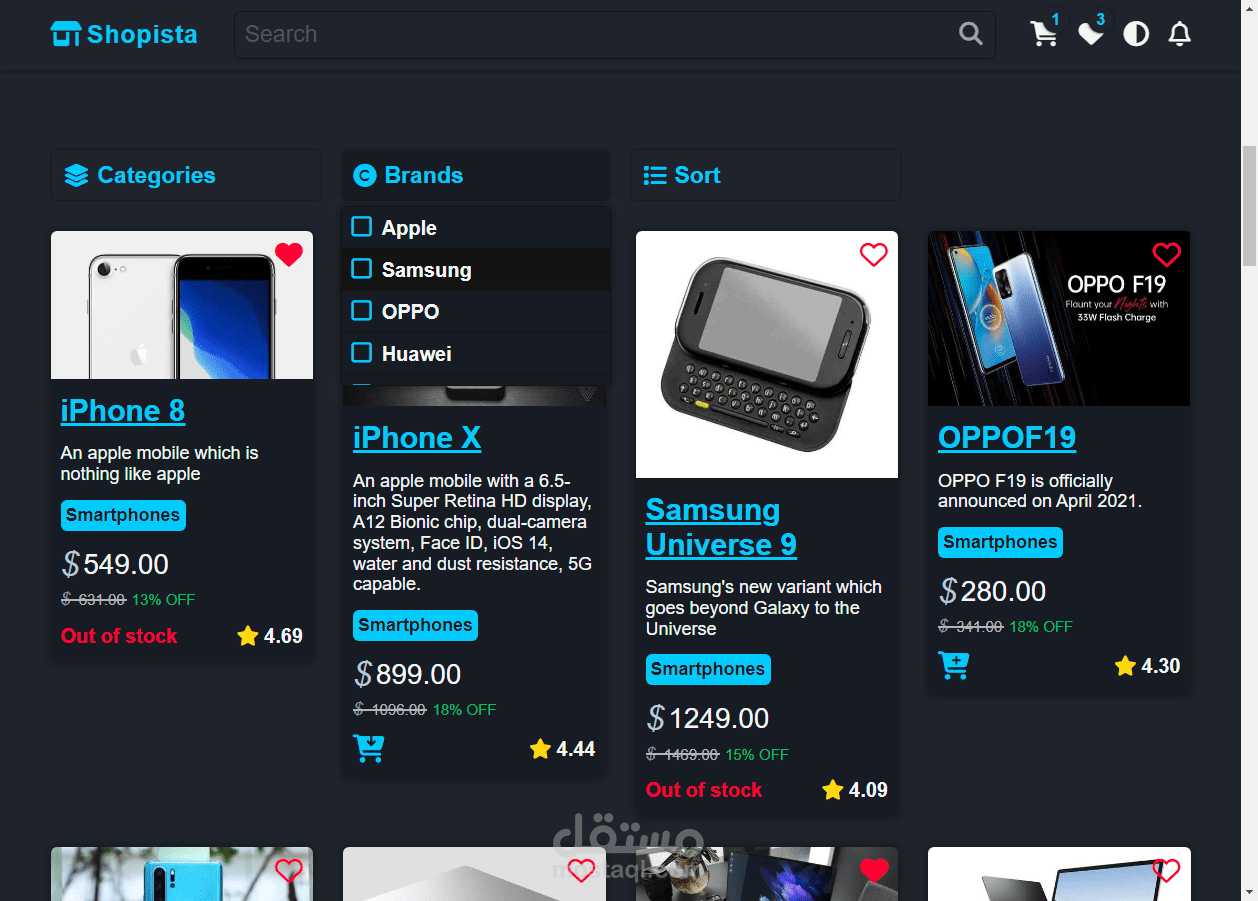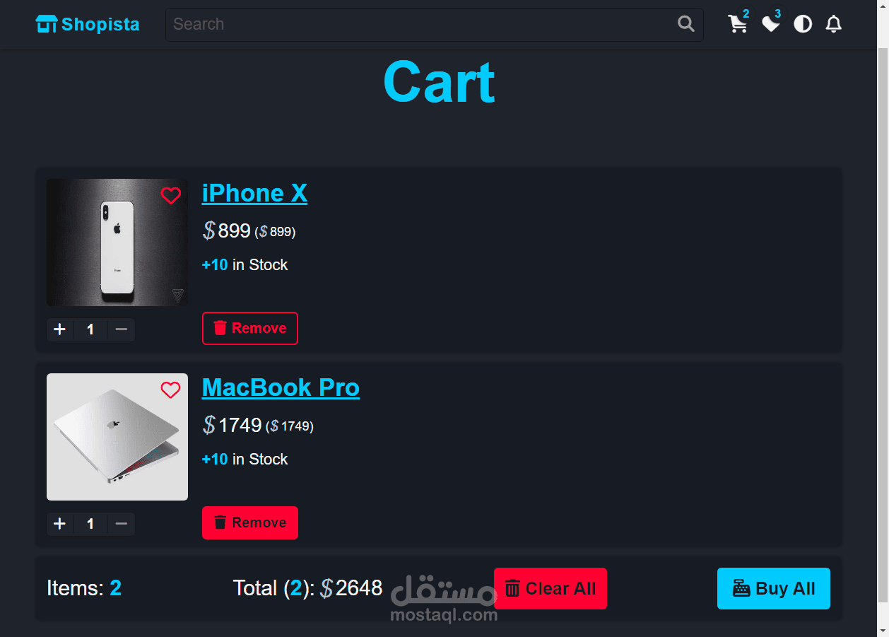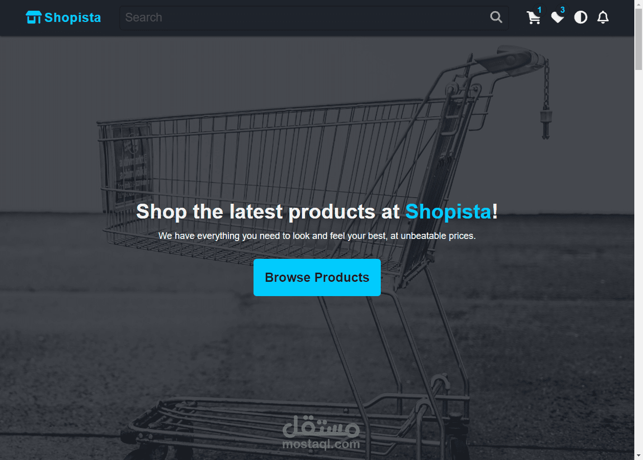 موقع متجر الكتروني يستخدم ال LocalStorage لتخزين السلة، والمفضلة، والمشتريات، واعدادات الموقع