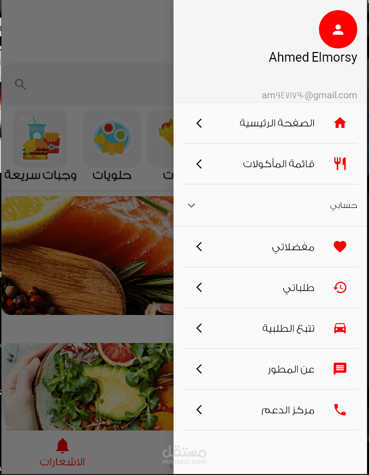تطبيق لاعداد وتوصيل الطعام للمستخدم والبائع والتوصيل