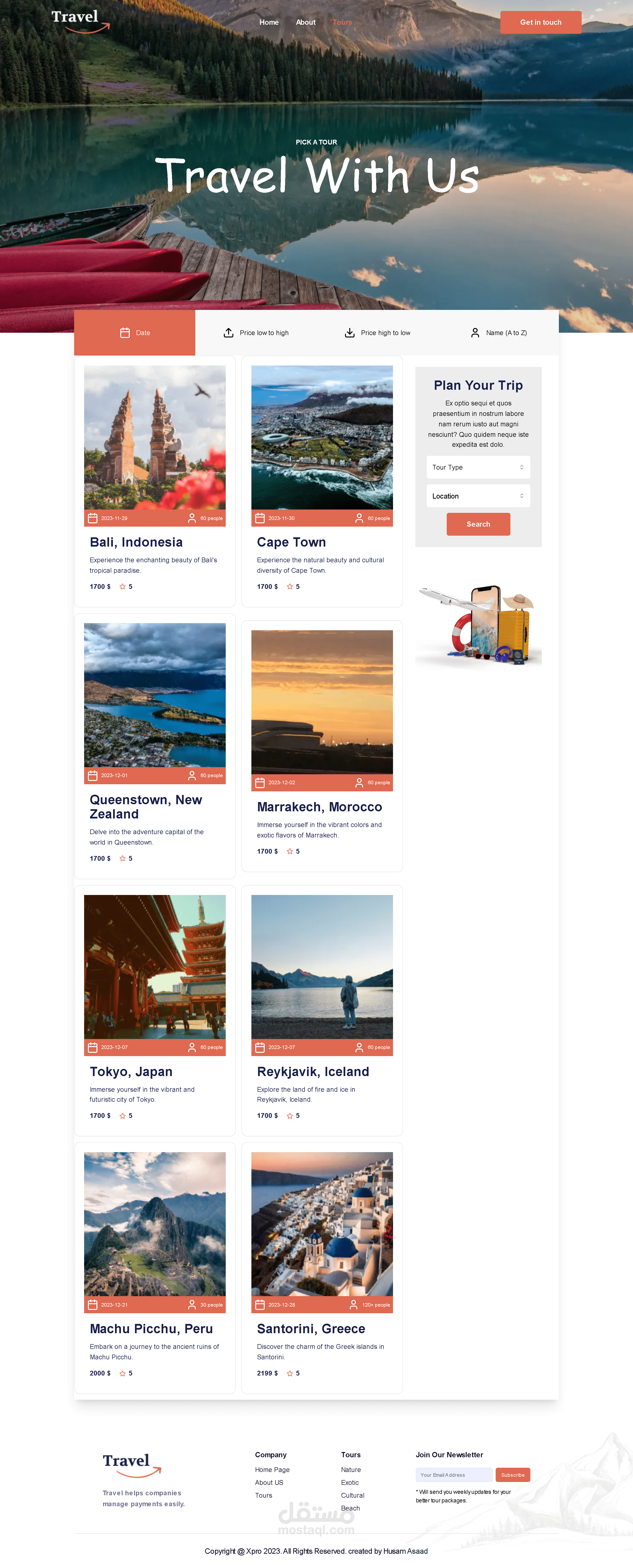 موقع إلكتروني مخصص لحجز الرحلات السياحية، حيث يوفر الموقع للمستخدمين تجربة تصفح سلسة لمجموعة متنوعة من باقات الرحلات، مع إمكانية الحجز المباشر عبر ملء استمارة مخصصة. يتلقى الفريق العامل على الموقع الردود والتفاعلات عبر تطبيق تيليجرام. تم بناء الموقع باستخدام Next.js مع React و Taiwlind CSS، وتم استخدام sanity لإدارة المحتوى.