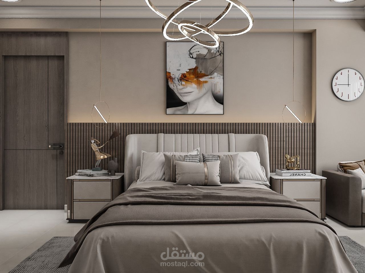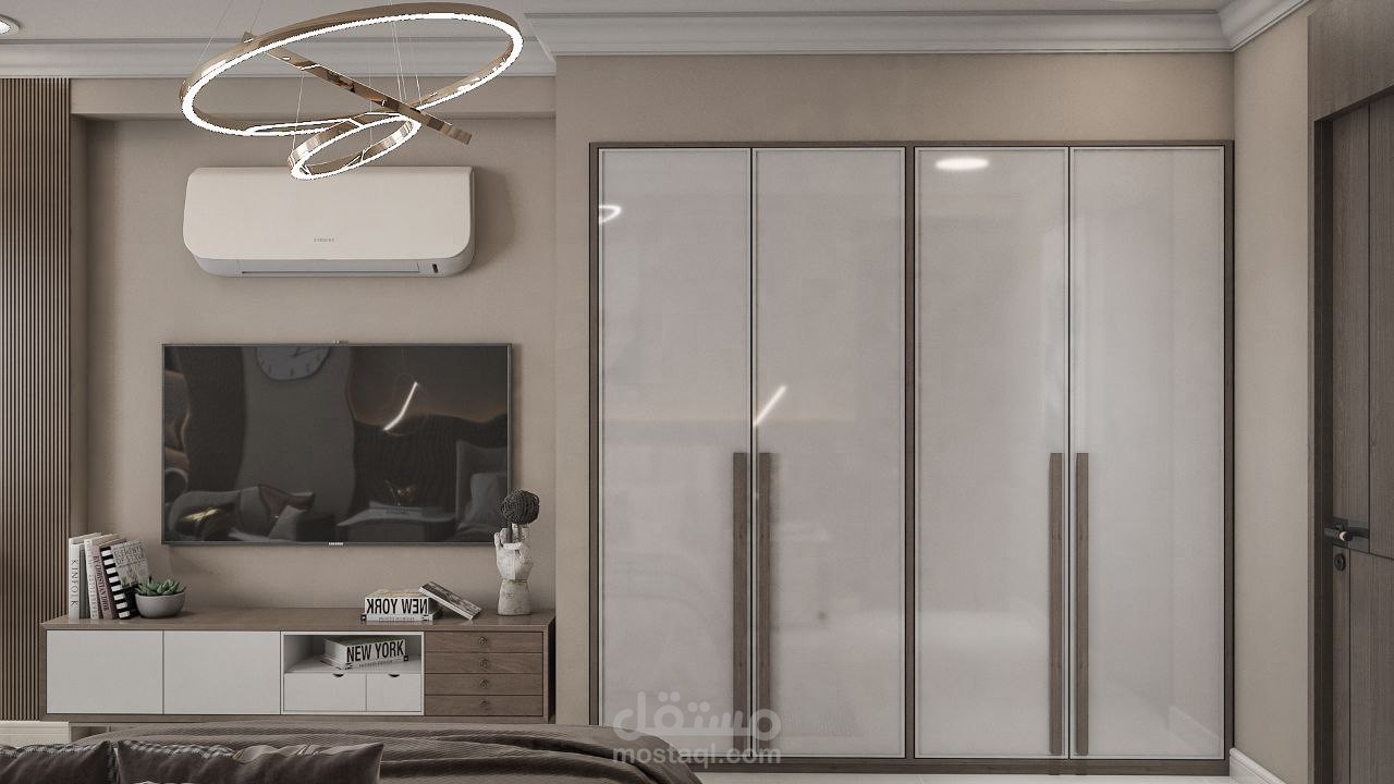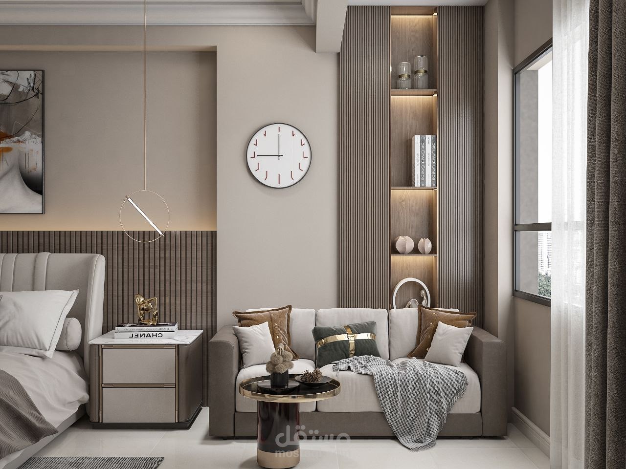 غرفة نوم حديثه متناسبه مع الشباب وتوفر جميع الاحتياجات للراحه والمذاكره