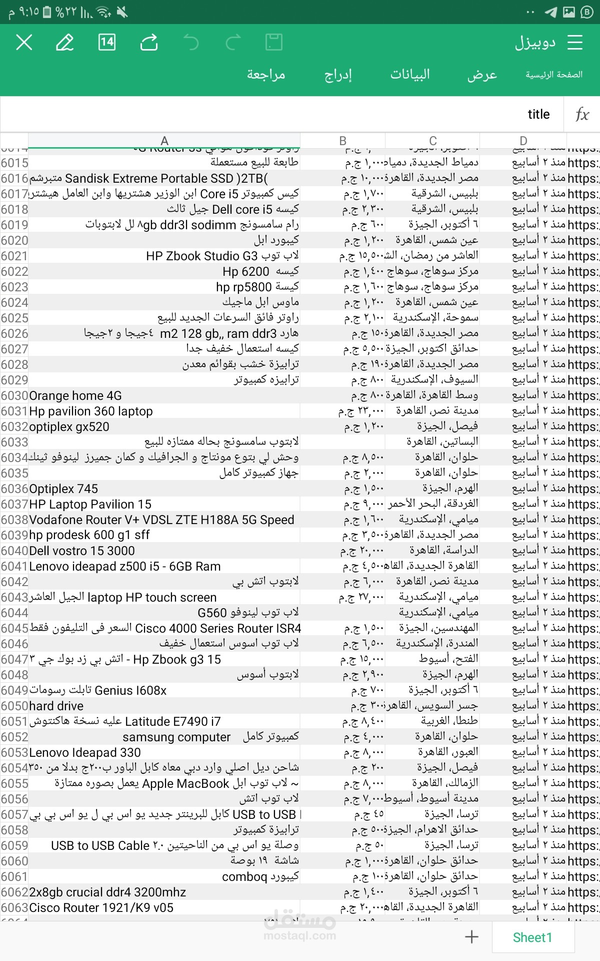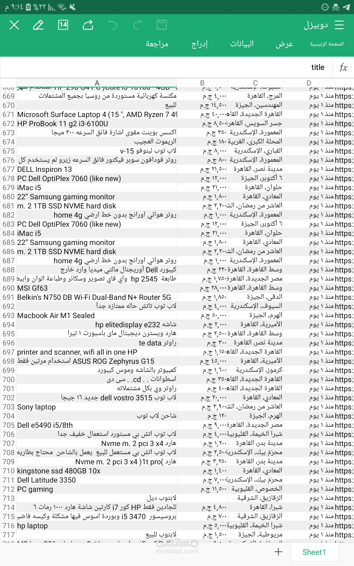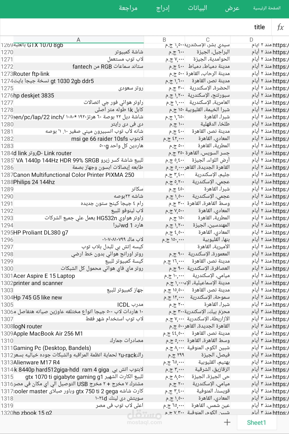 قمت بإنشاء سكربت بإستخدام لغة Python يقوم باستخراج آلاف البيانات من موقع "دوبيزل doubbizle" خلال دقائق مثل الاسم والعنوان والسعر الخاص بالإعلان فى ملف Excel ، تم استخراج 9500 سطر من البيانات خلال دقائق