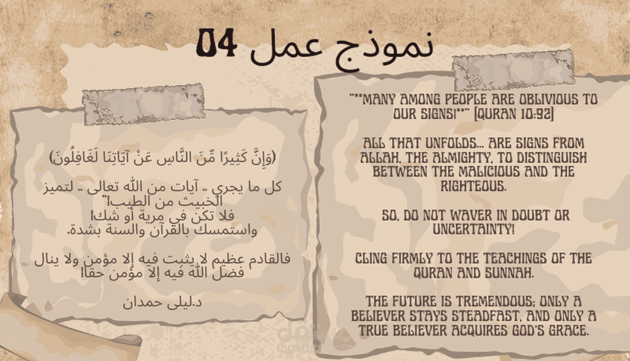 مترجمة متخصص ومتعددة المهارات، أركز بشكل أساسي على ترجمة النصوص الدينية من اللغة العربية إلى اللغة الإنجليزية. إليك تفاصيل أكثر: