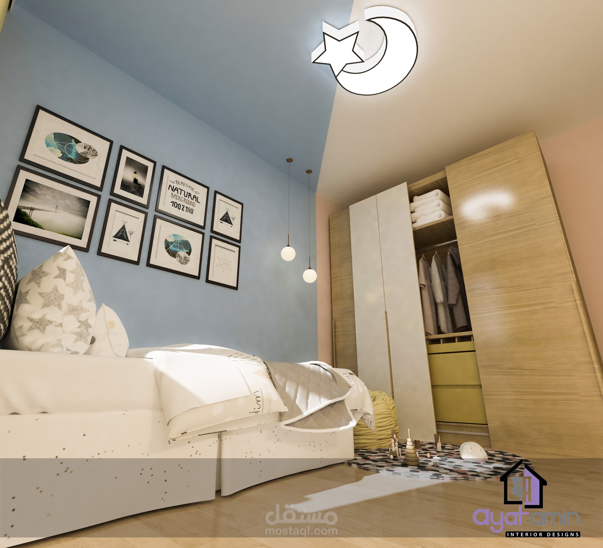 غرفة اطفال صغيرة لولدين وبنت حسب رغبة العميل