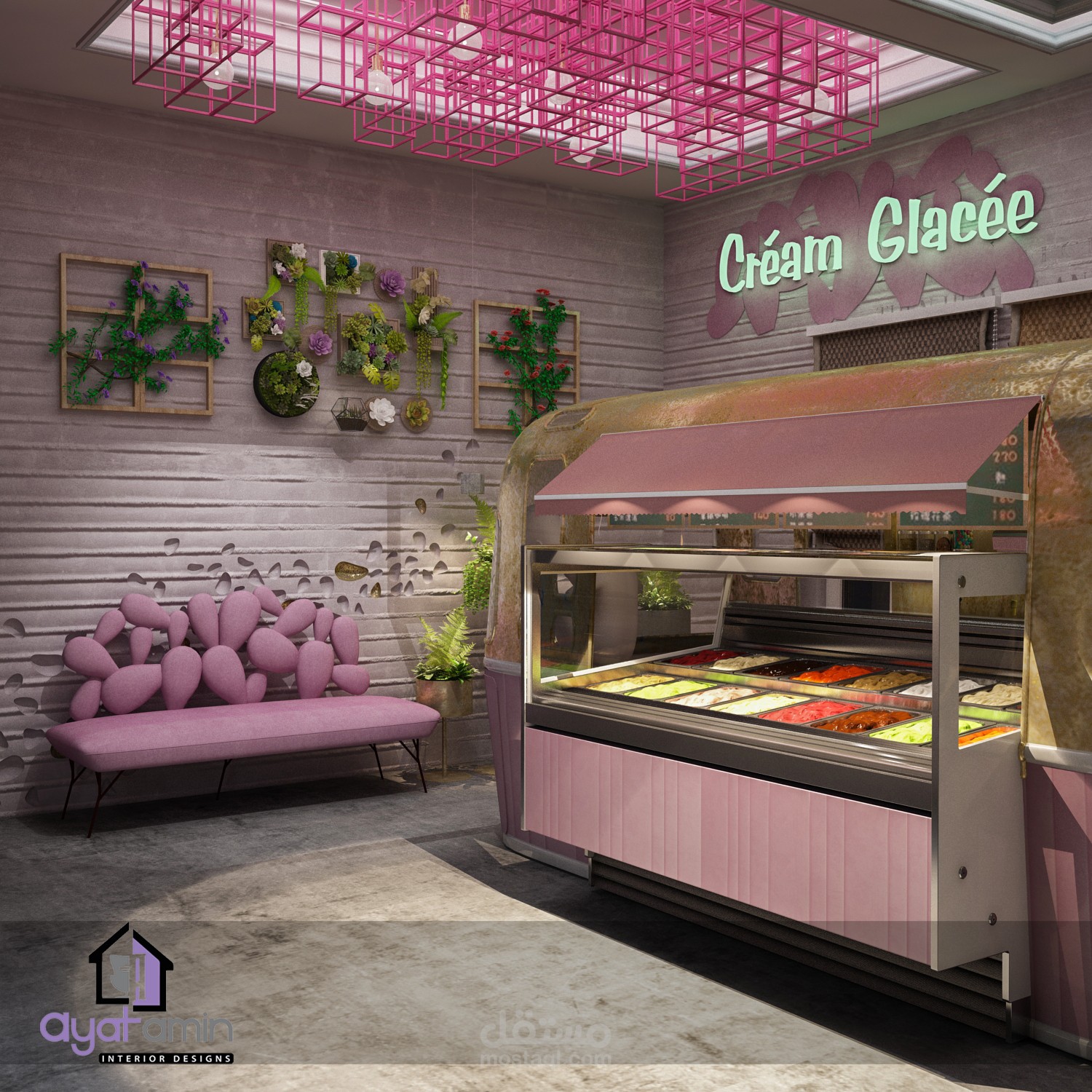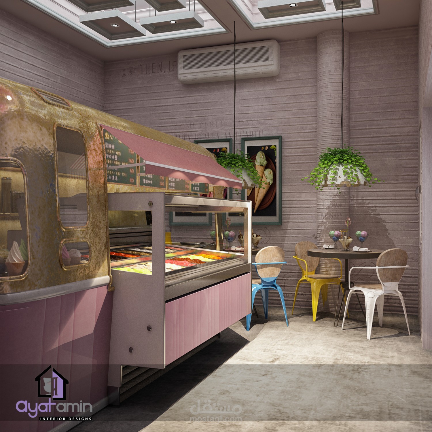 تصميم داخلي لمحل ايس كريم