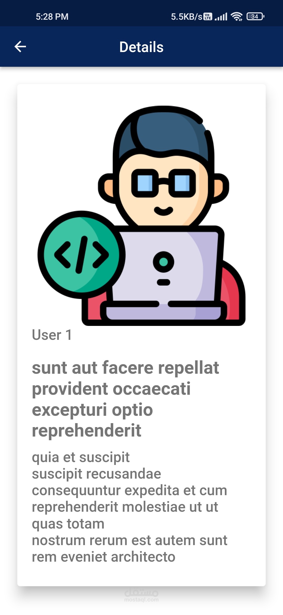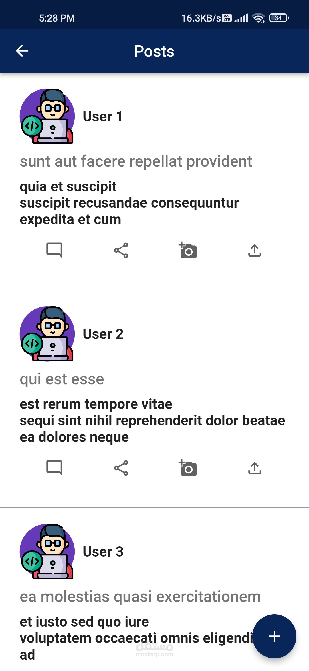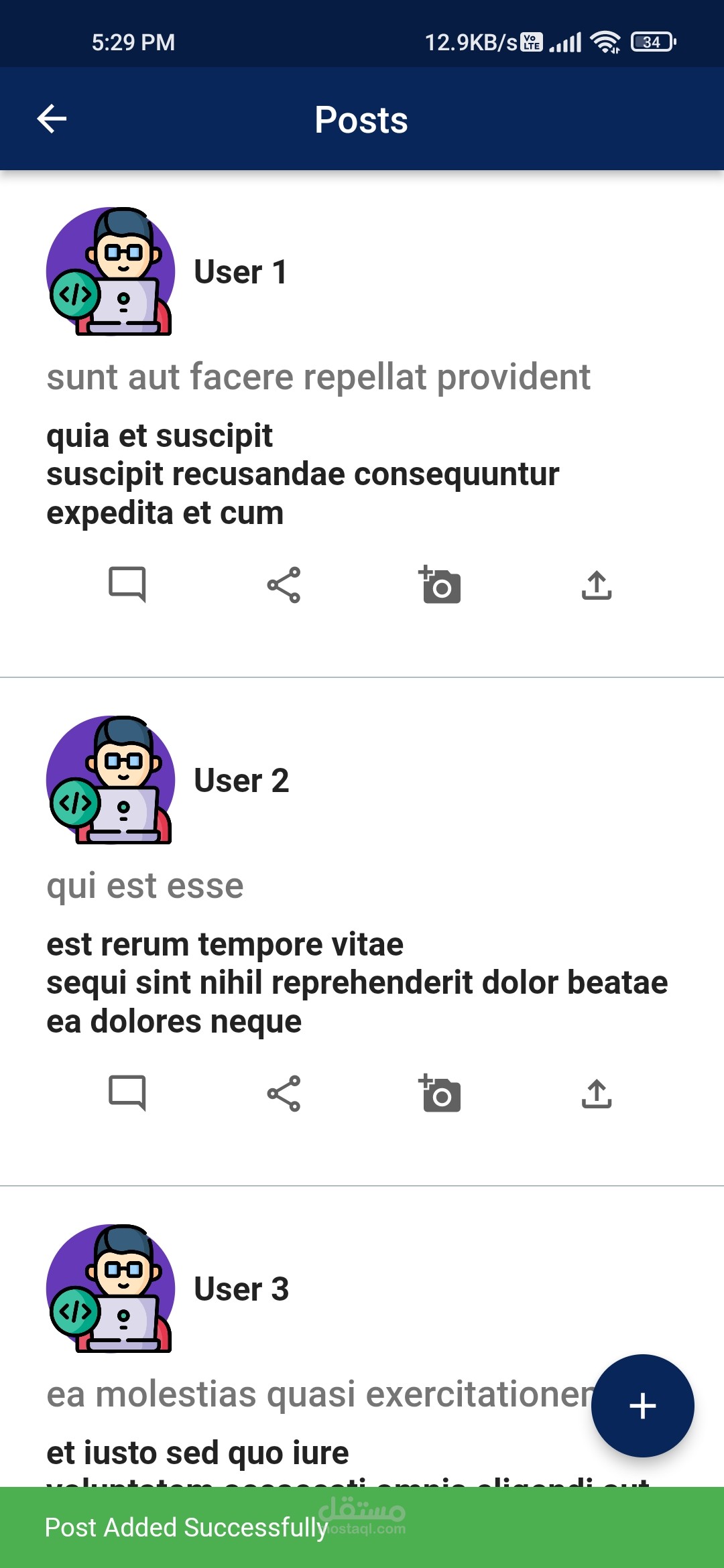 JSONPlaceholder API. يتبع التطبيق النمط MVC (Model-View-Controller).