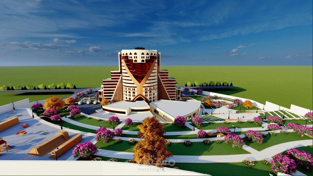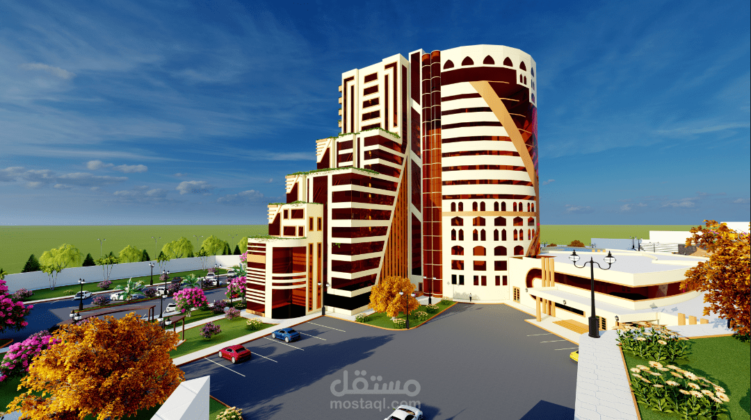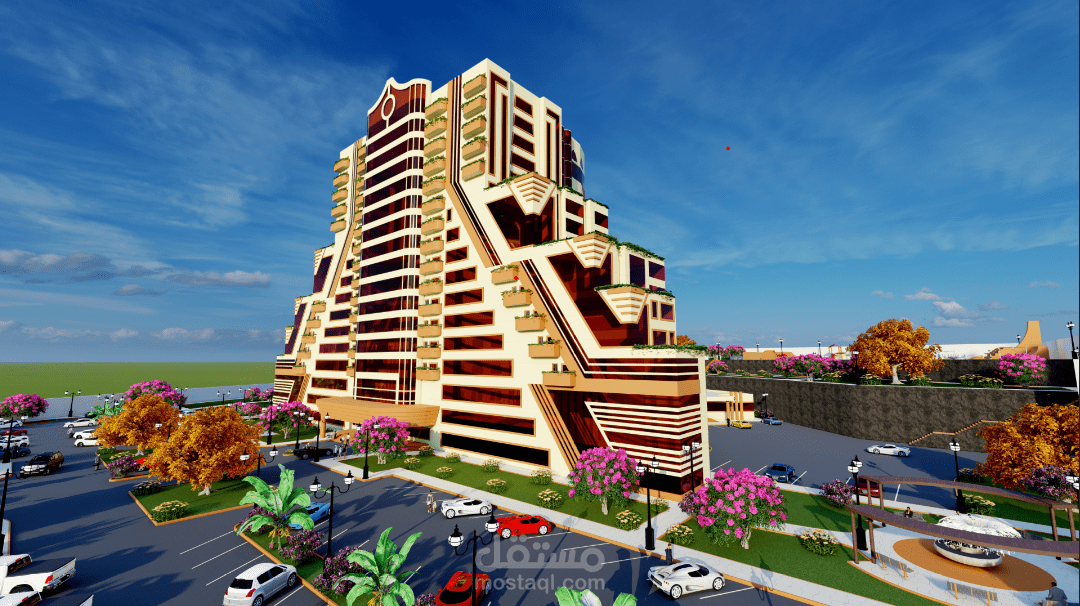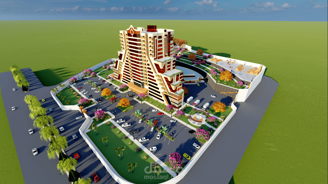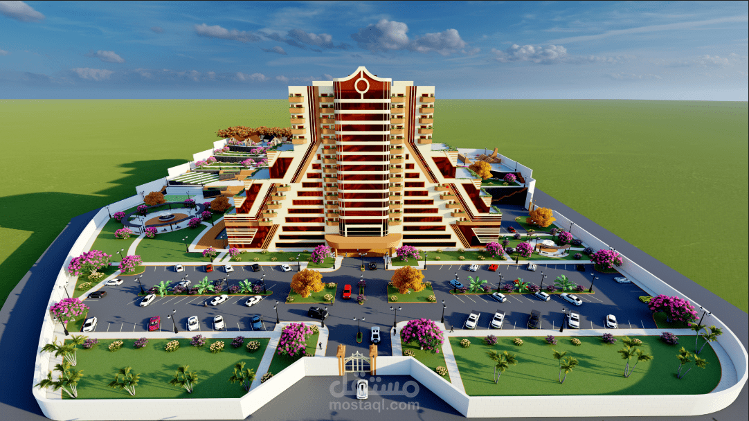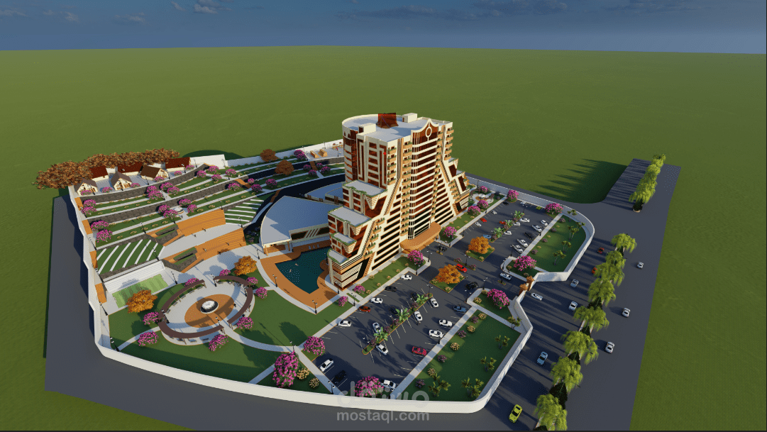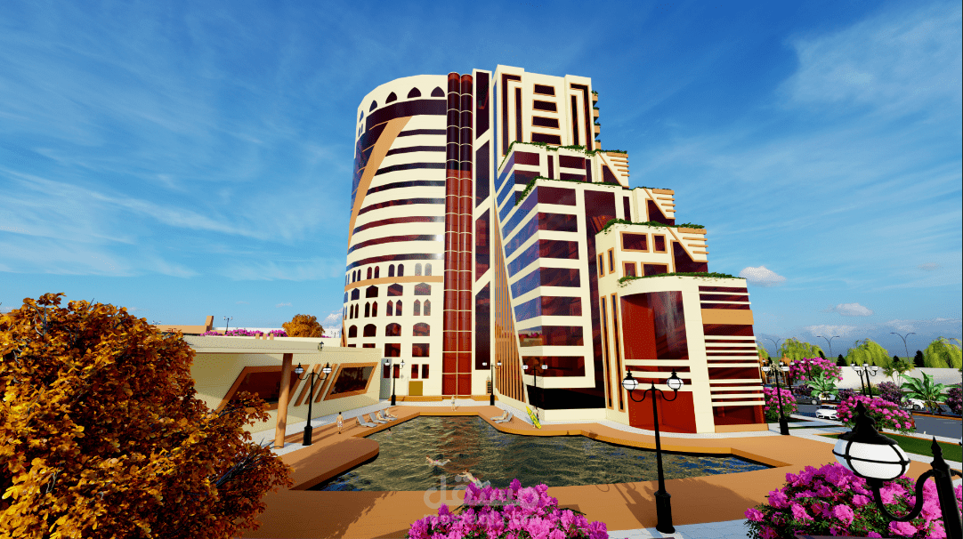 المشروع عبارة عن فندق خمس نجوم يتكون من بدروم وعشرة طوابق يقدم خدمات سكنية ترفيهية تشمل خدمات الغرف الفندقية بالإضافة الى المحلات التجارية والخدمات الترفيهية الأخرى مثل الملاعب وساونا وحمامات سباحة وتوفير قاعة مجهزة بكافة التجهيزات اللازمة للأفراح والمناسبات المختلفة وصالة العاب رياضية بالإضافة الى مطعم مع صالة طعام كبيرة ويحتوي على جميع الخدمات التي يحتاجها السياح ويستهدف الفندق قطاعات متعددة مثل قطاع السياح والأجانب ورجال الاعمال والشركات الخاصة والمؤسسات الحكومية