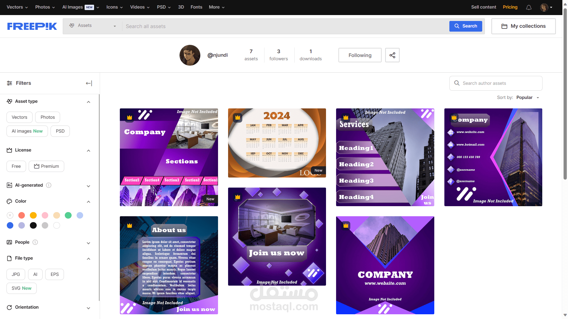 بالإضافة إلى أعمالي المنشورة على موقع فريبيك (Freepik) العالمي للقوالب الجاهزة