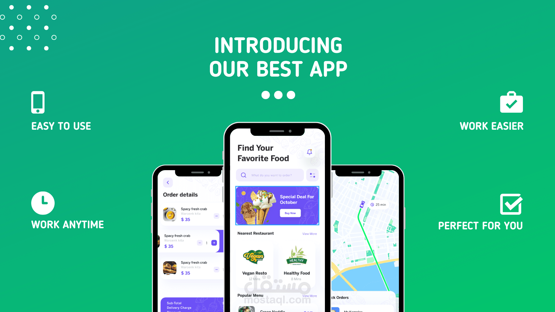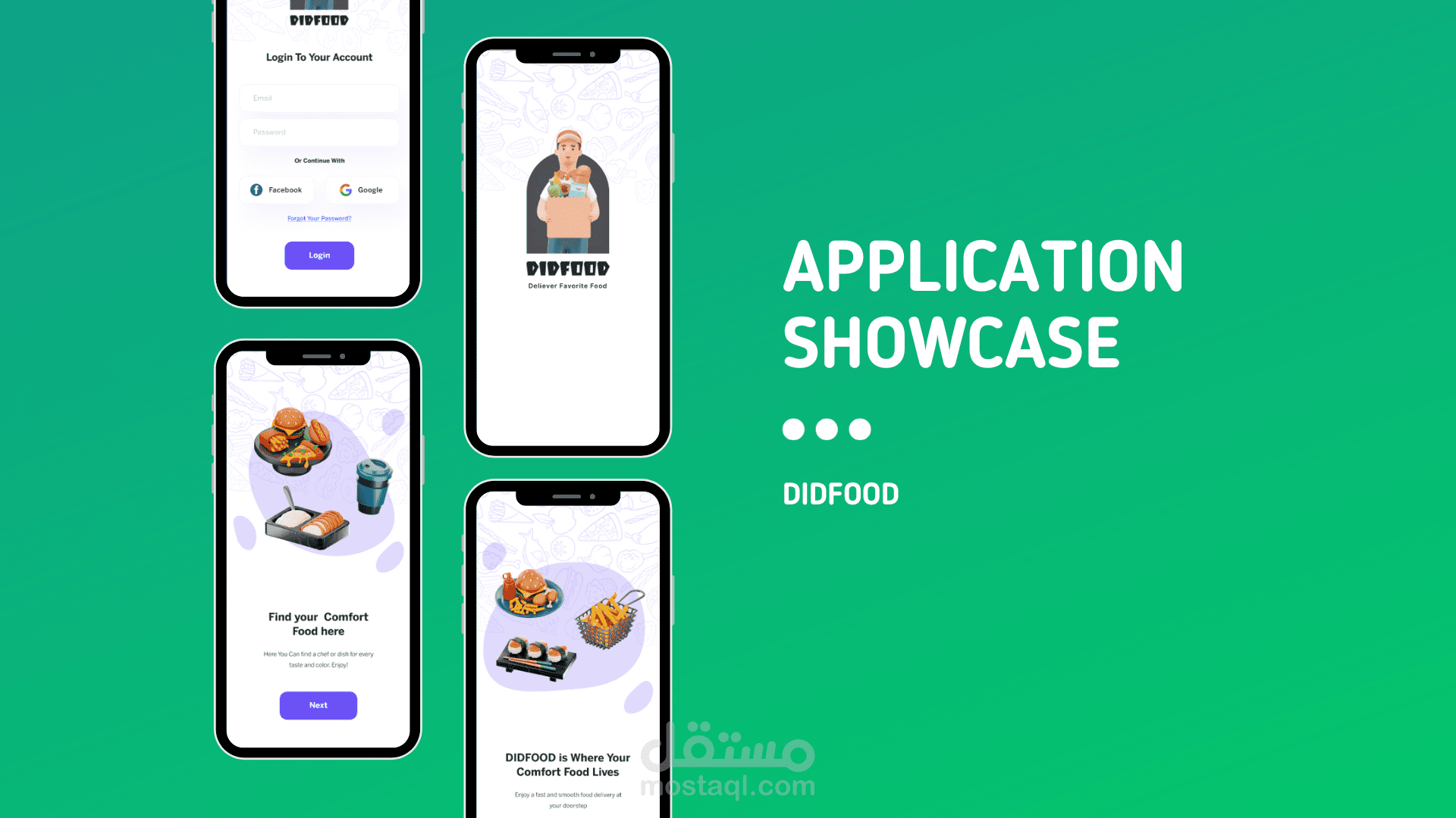 تطبيق دليفري لتوصيل الوجبات من المطاعم يشمل العديد من الواجهات التي تتميز بسهوله التعامل